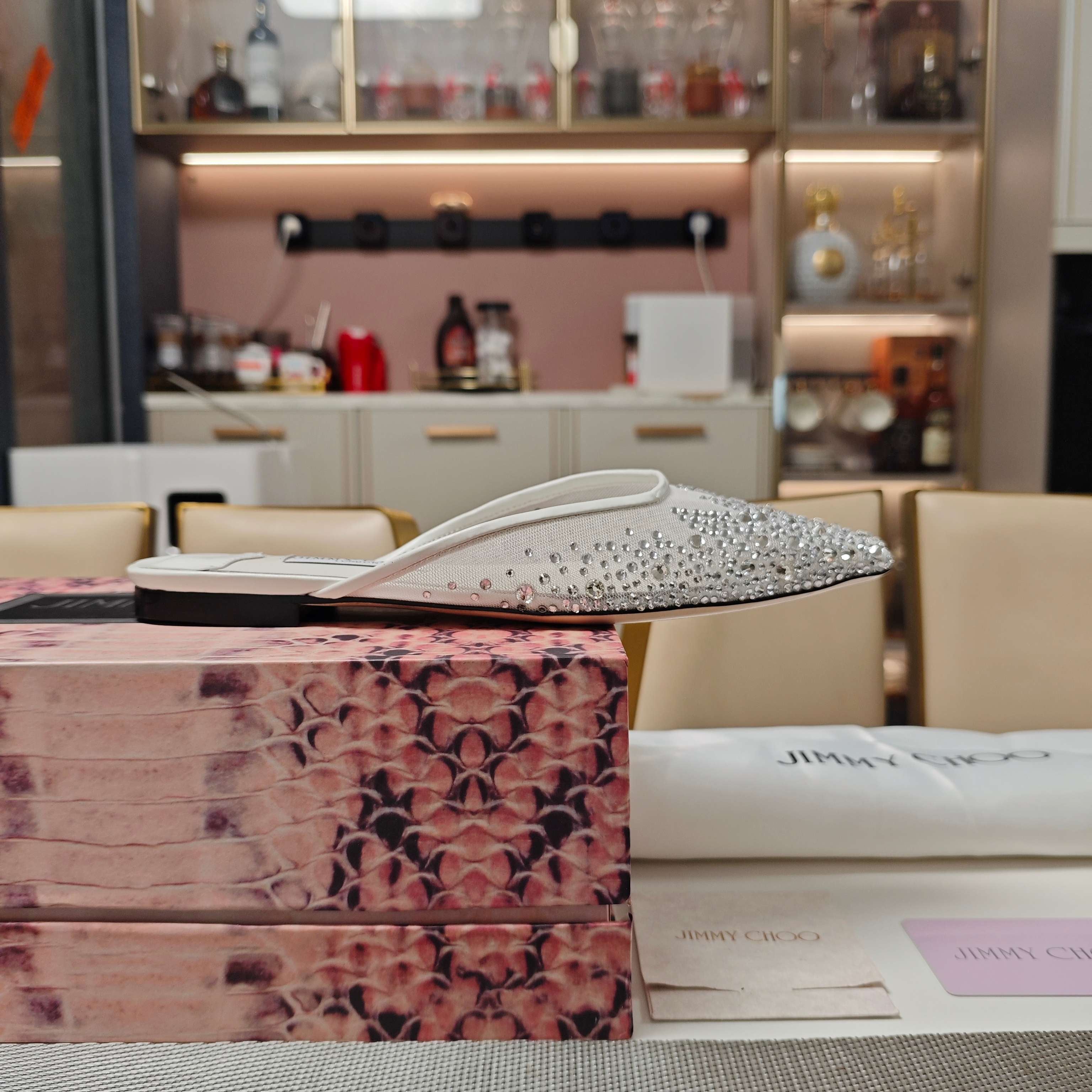 Jimmy 25 Mule Flats White Mesh Gauze 240056