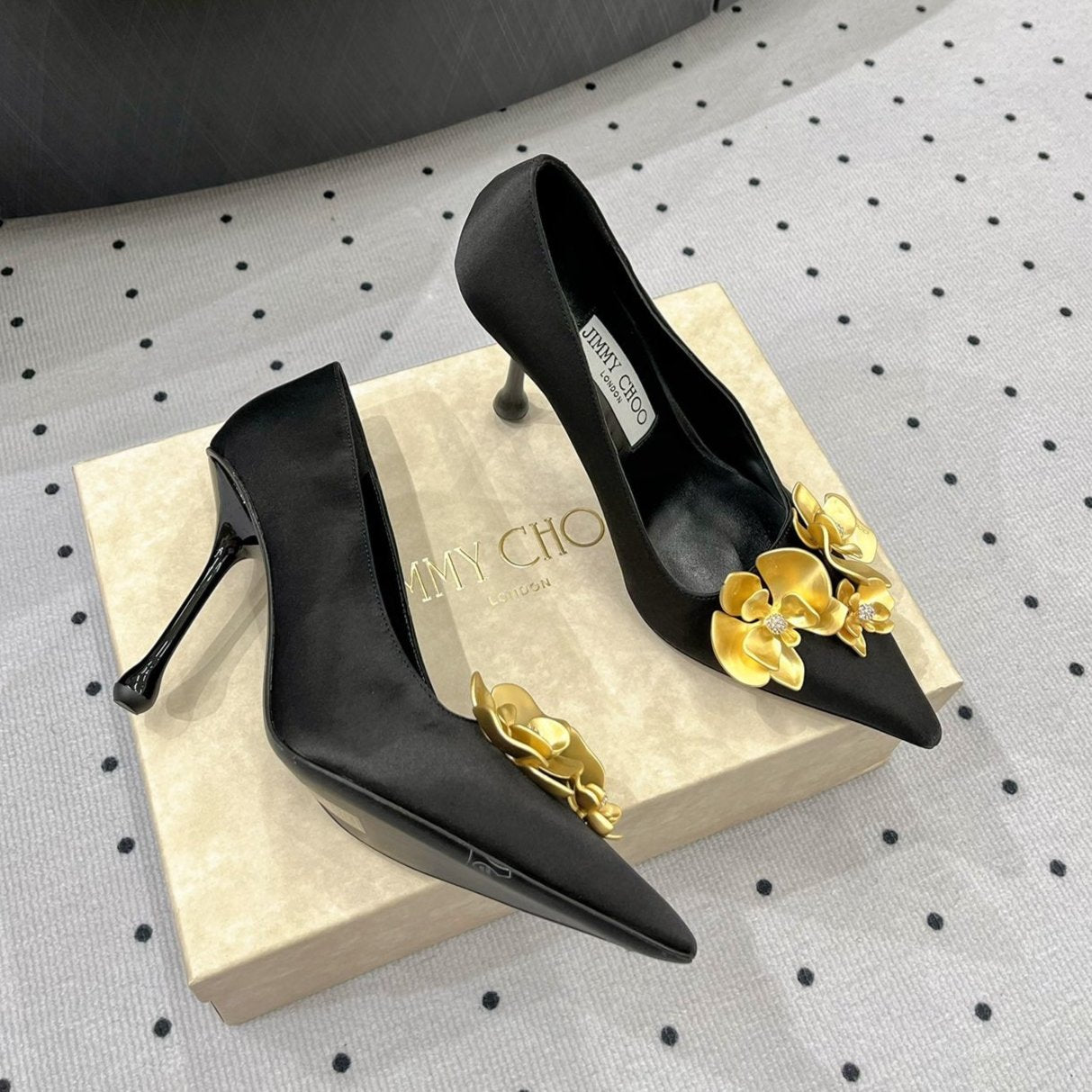 Jimmy Ixia 95 In Black Cowhide Pumps With Flowers 591587