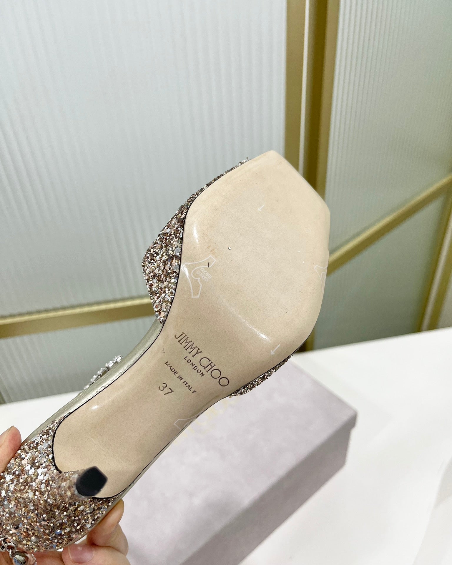 - Material: Satin With Glitt, Crystal/Lambskin