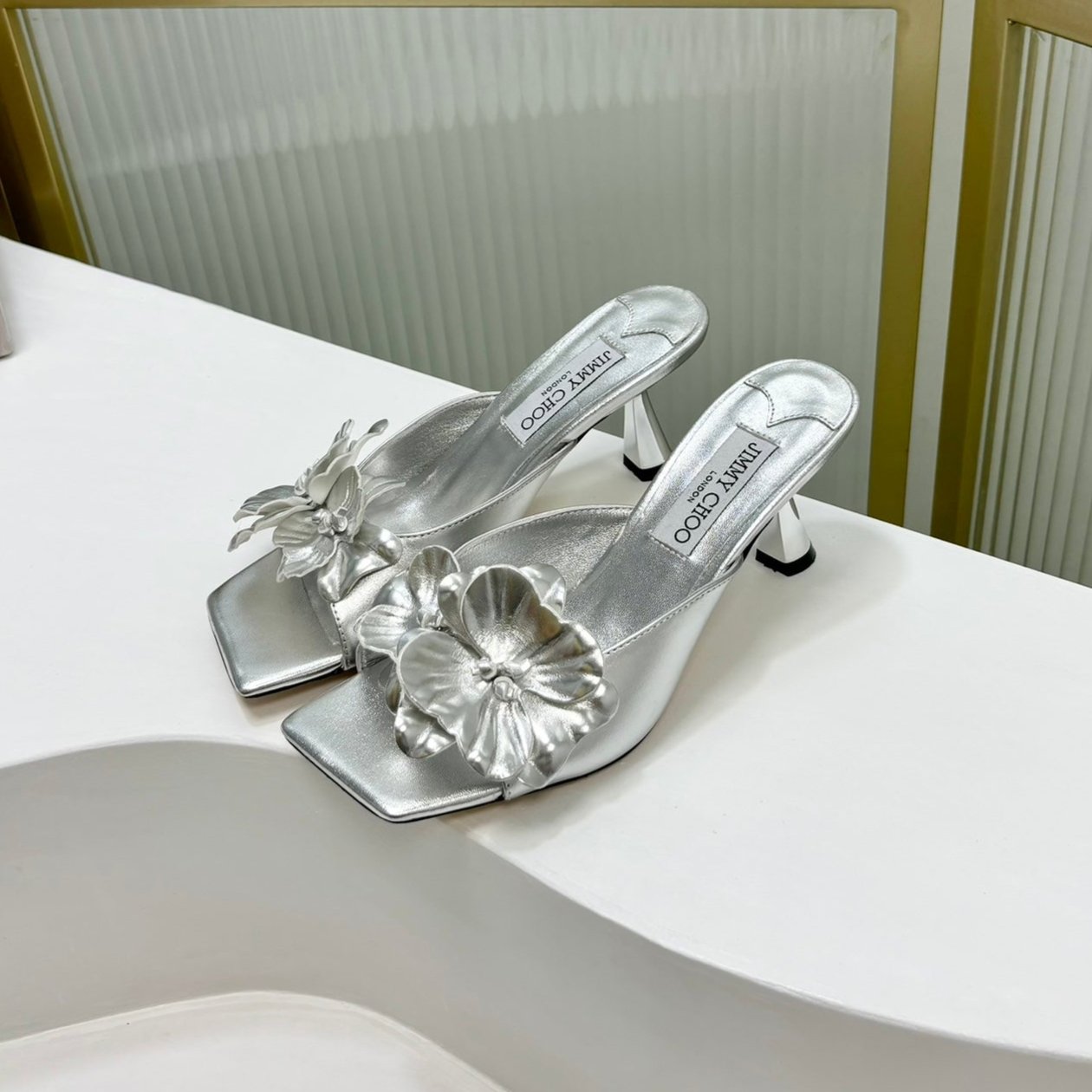 Jimmy Skye 65mm In Silver Cowhide Mules 597846