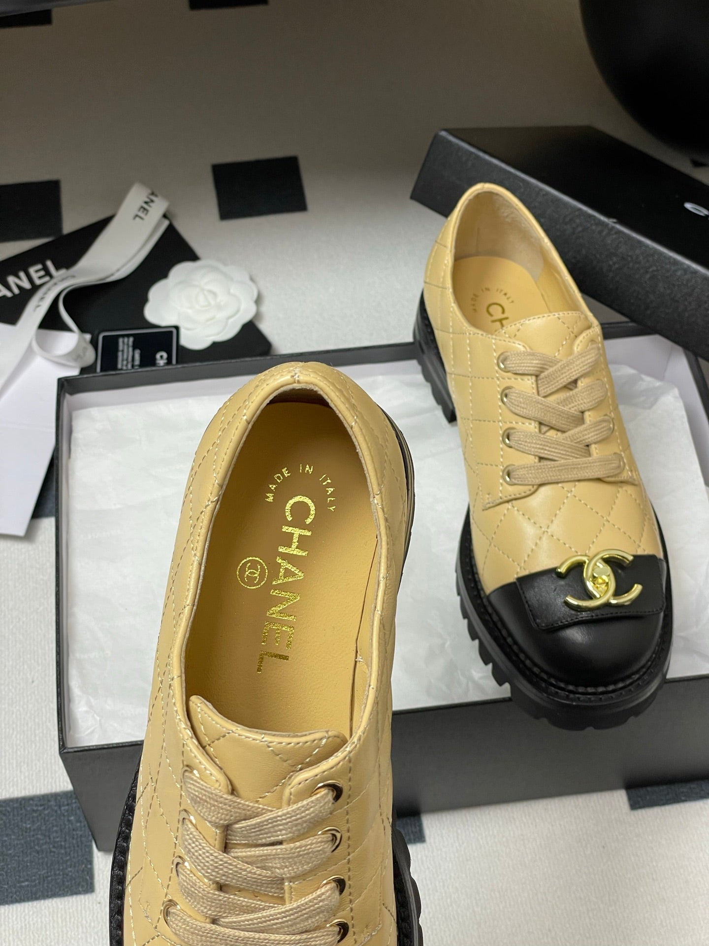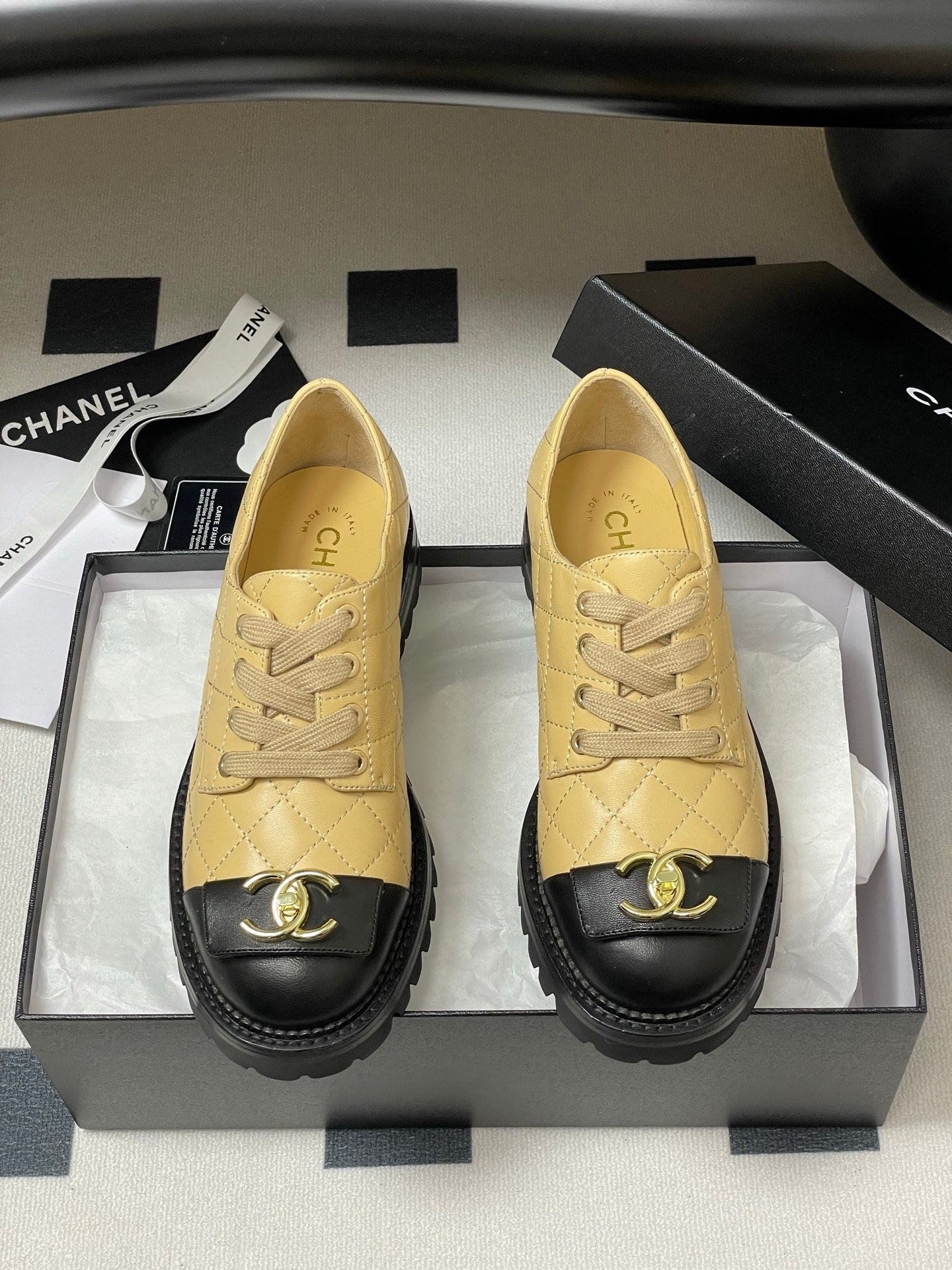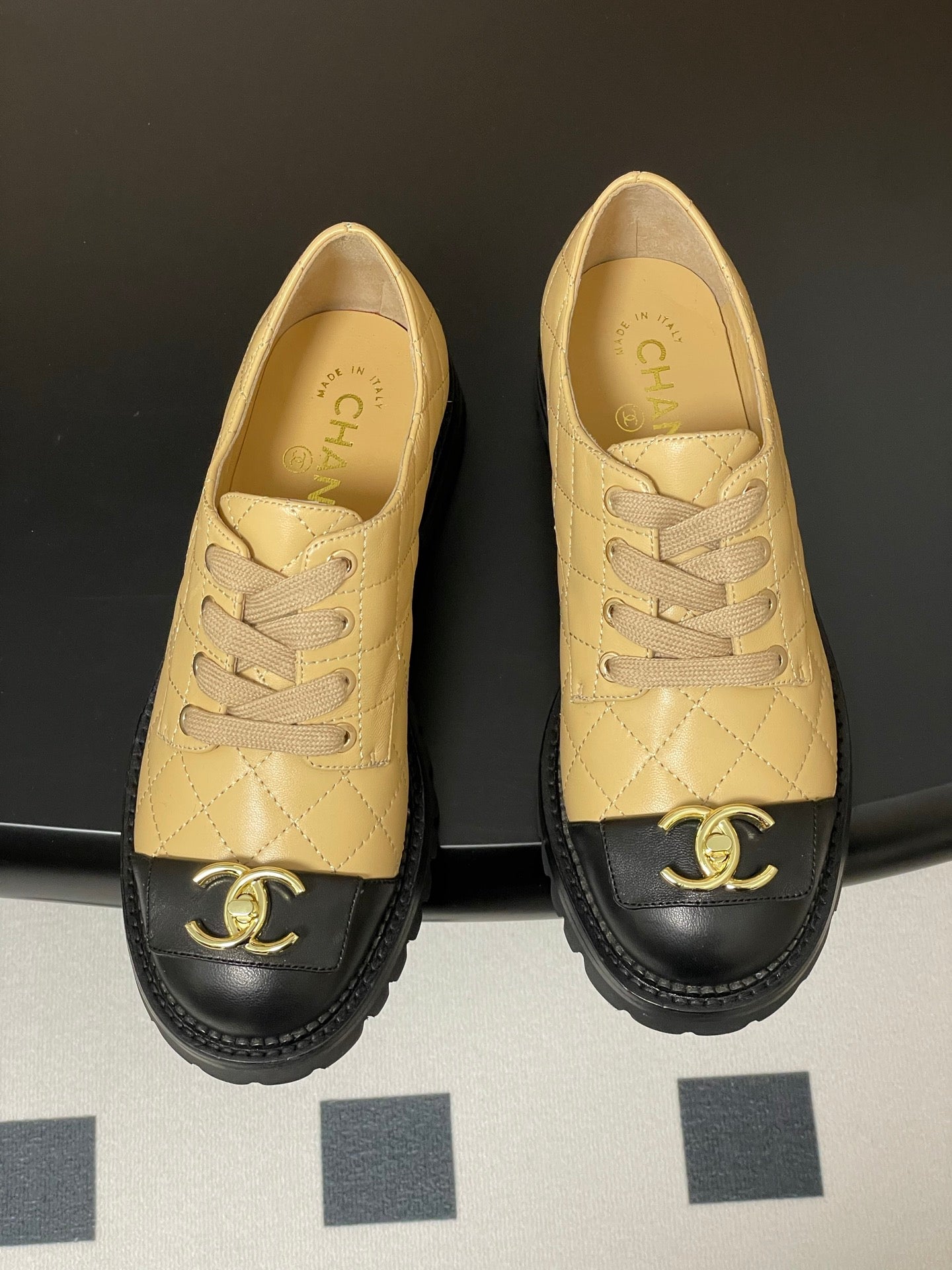 25K Double C Buckle Thick-Soled 25mm Loafer Beige Black Lambskin 247708