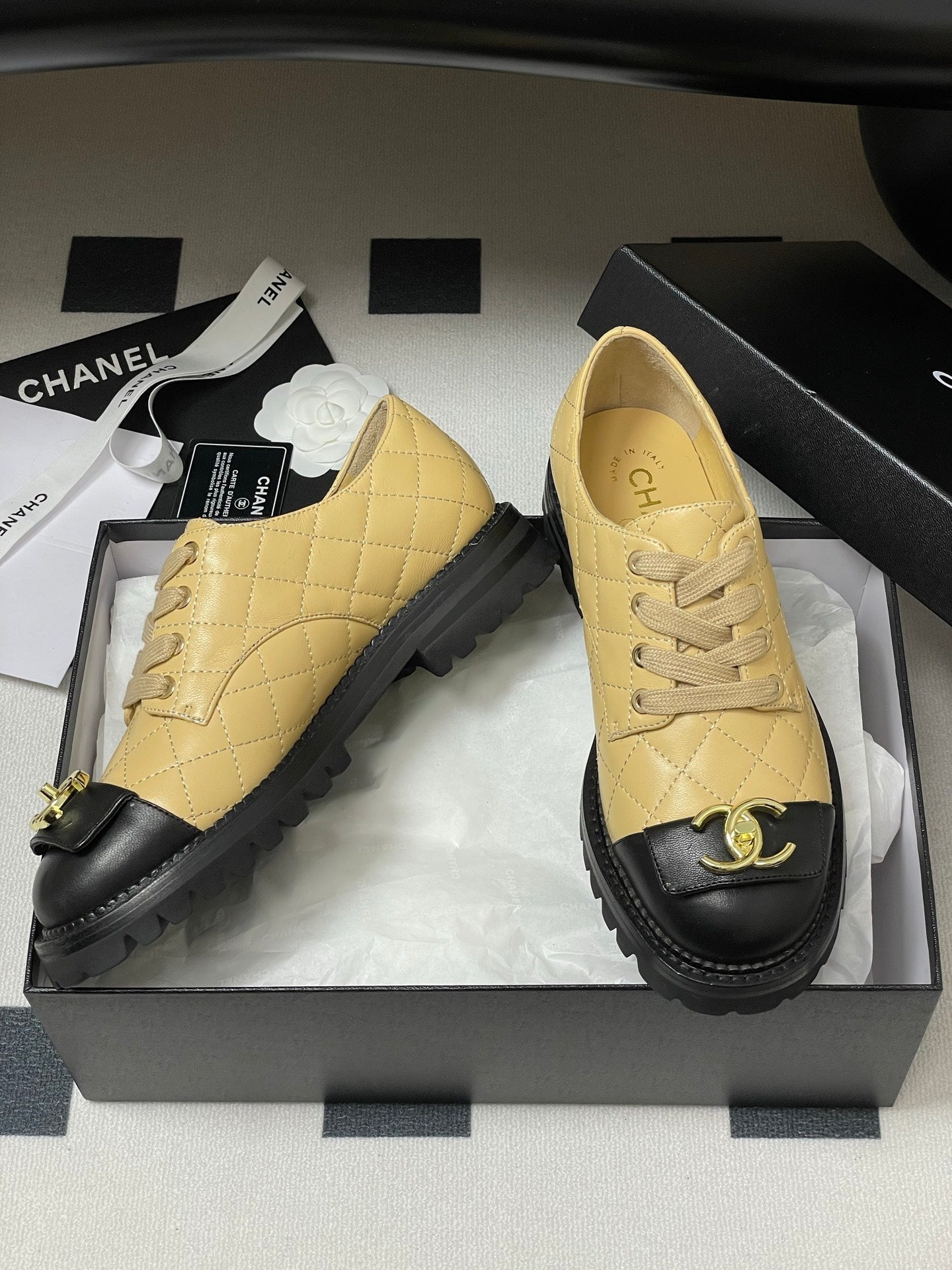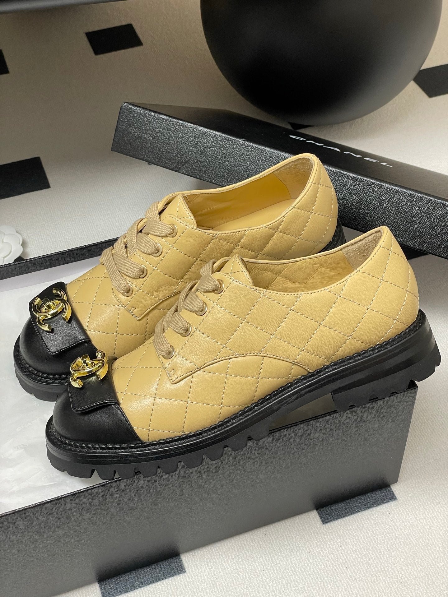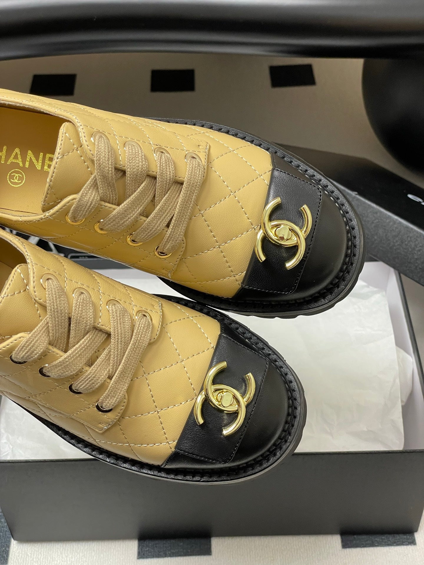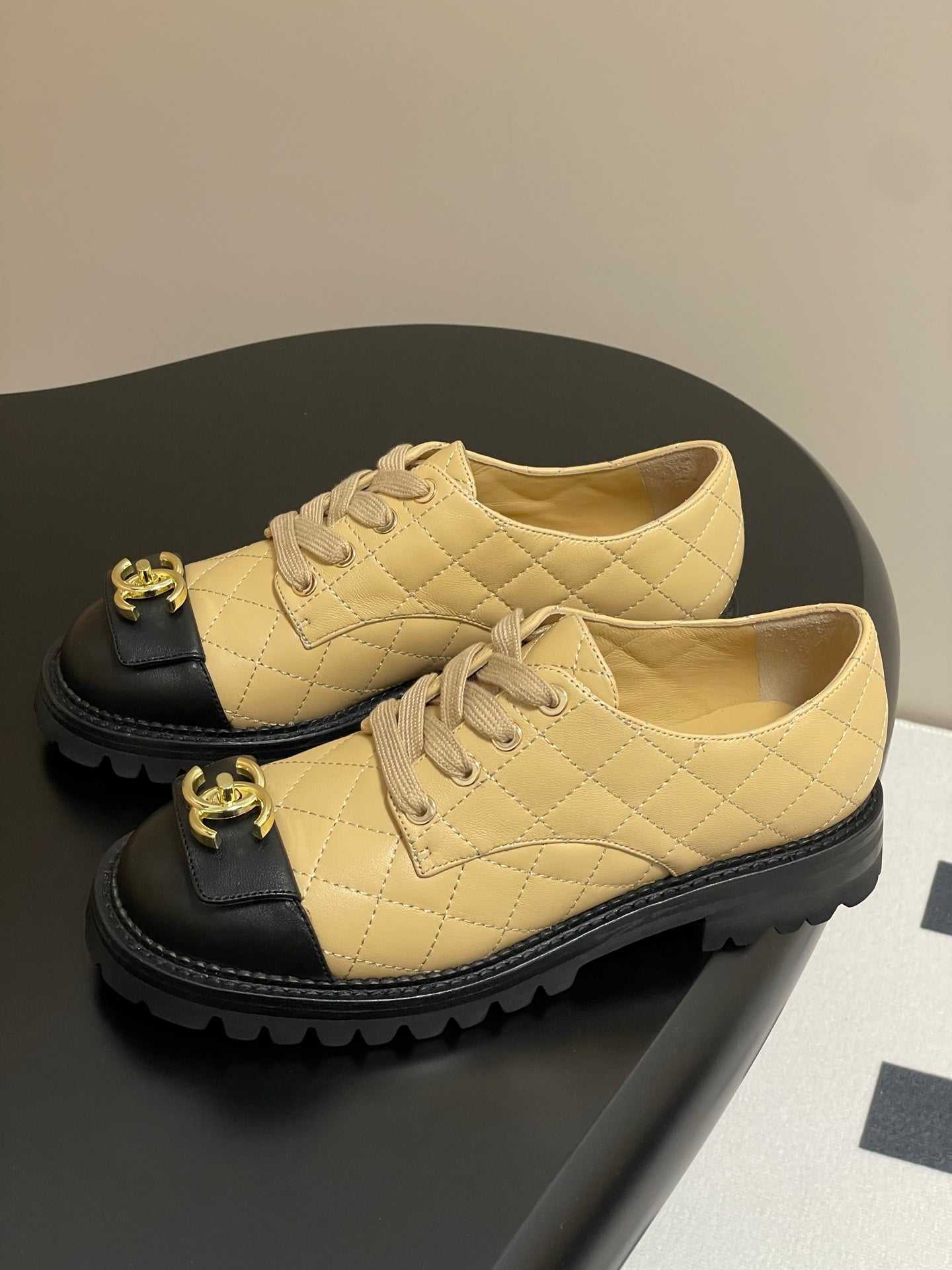 25K Double C Buckle Thick-Soled 25mm Loafer Beige Black Lambskin 247708