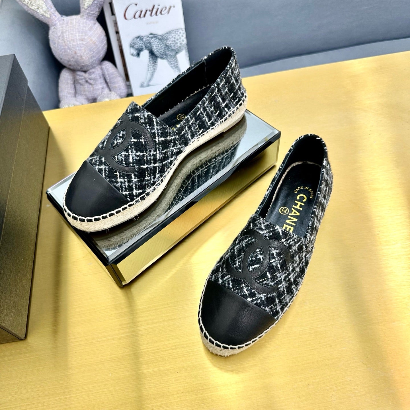 CC 25s Slip–on Espadrilles Black/White Tweed 297824