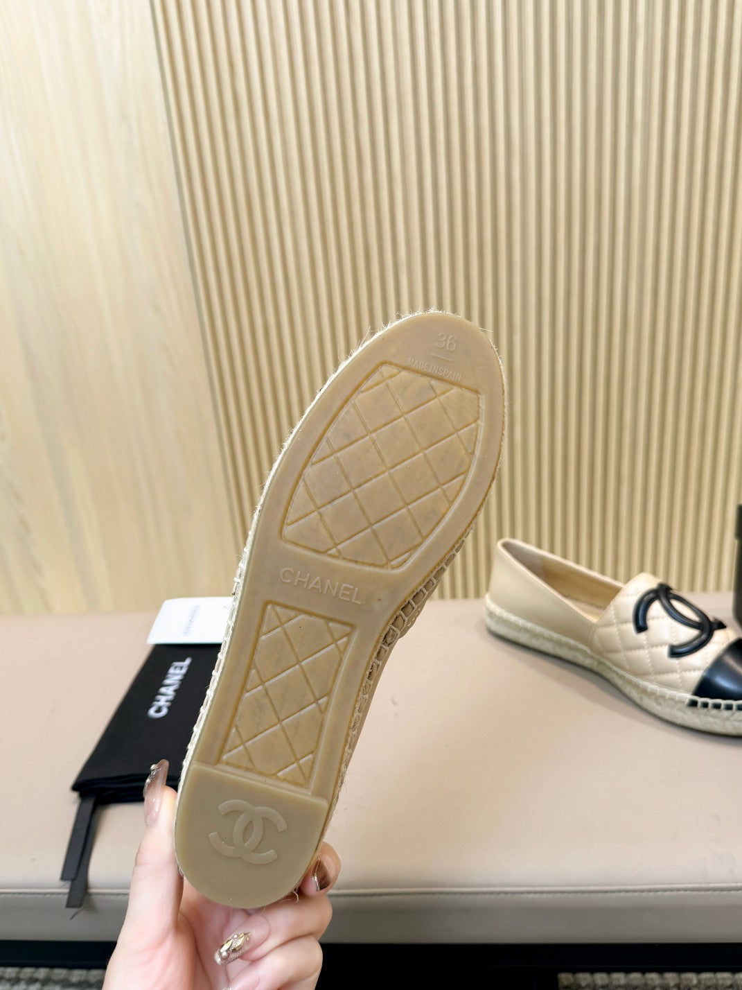 cc espadrilles light beige black quilted caflskin