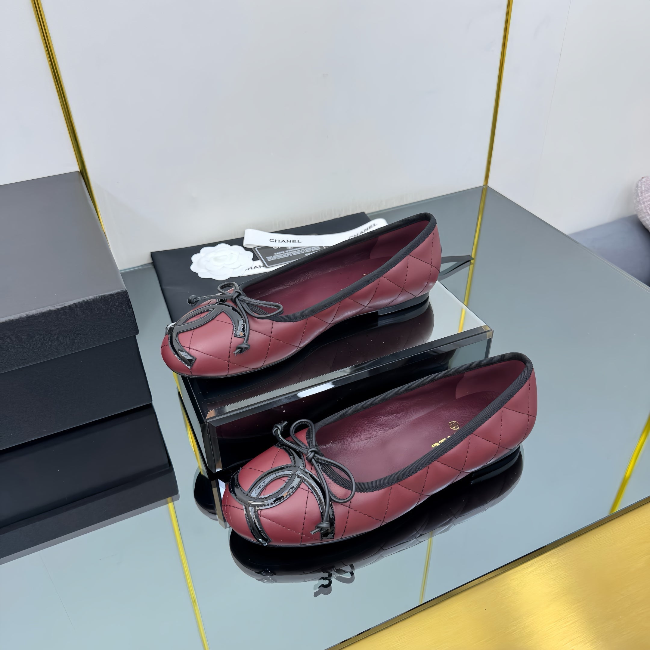 CC Loafers Burgundy Sheepskin Mix Bow 297793