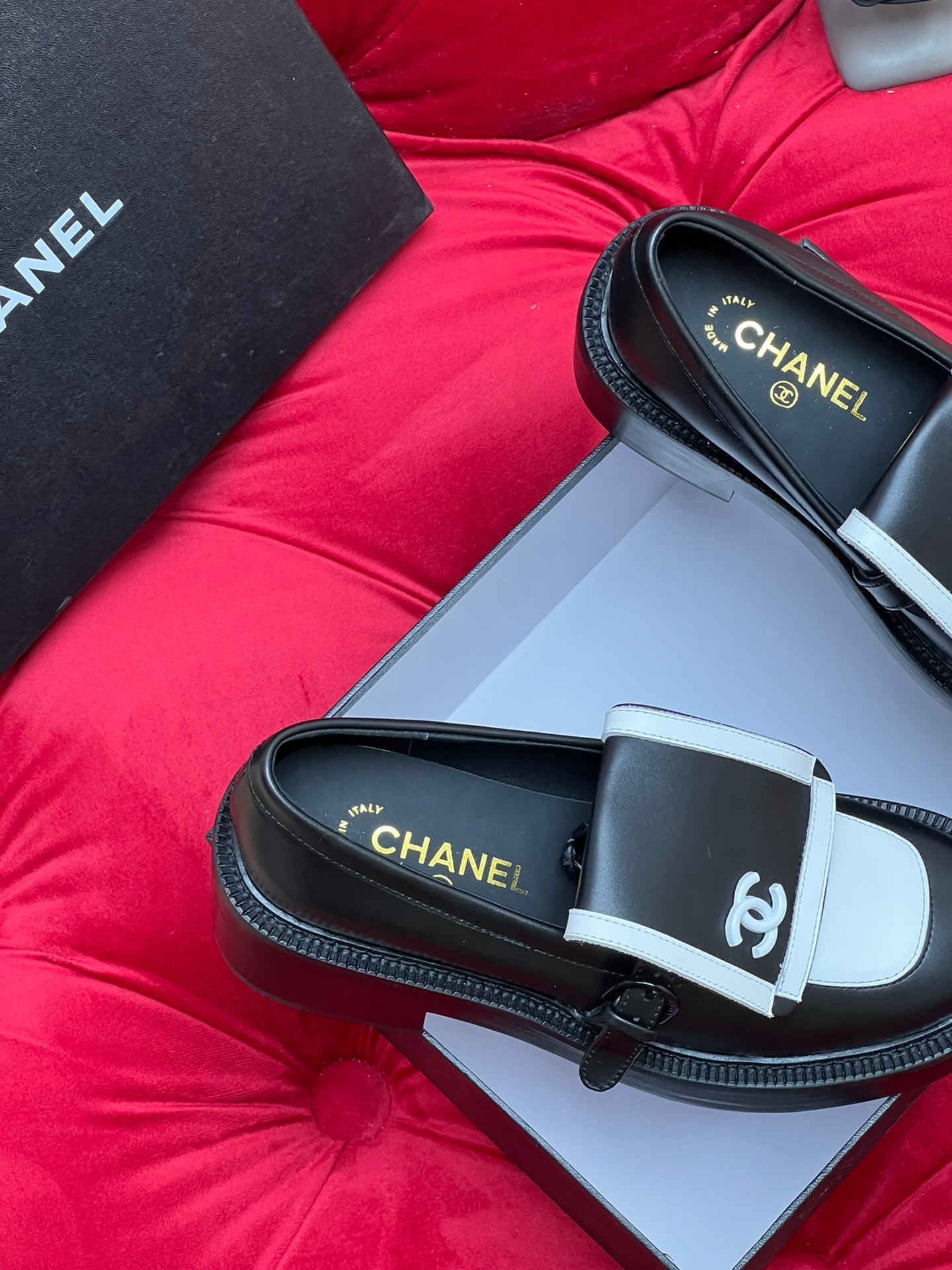 CC MOCCASIN LOAFER IN BLACK MIX WHITE LAMBSKIN