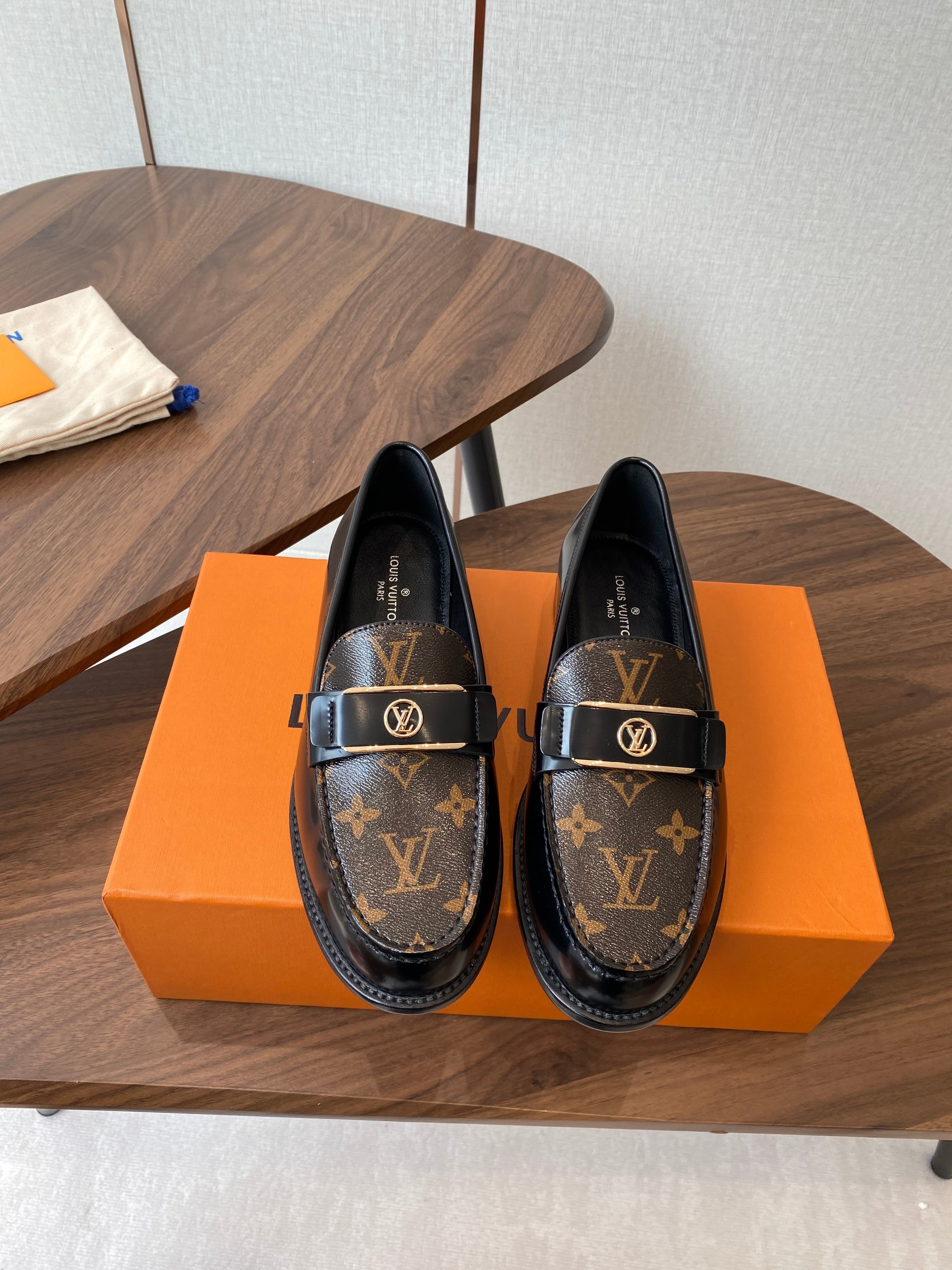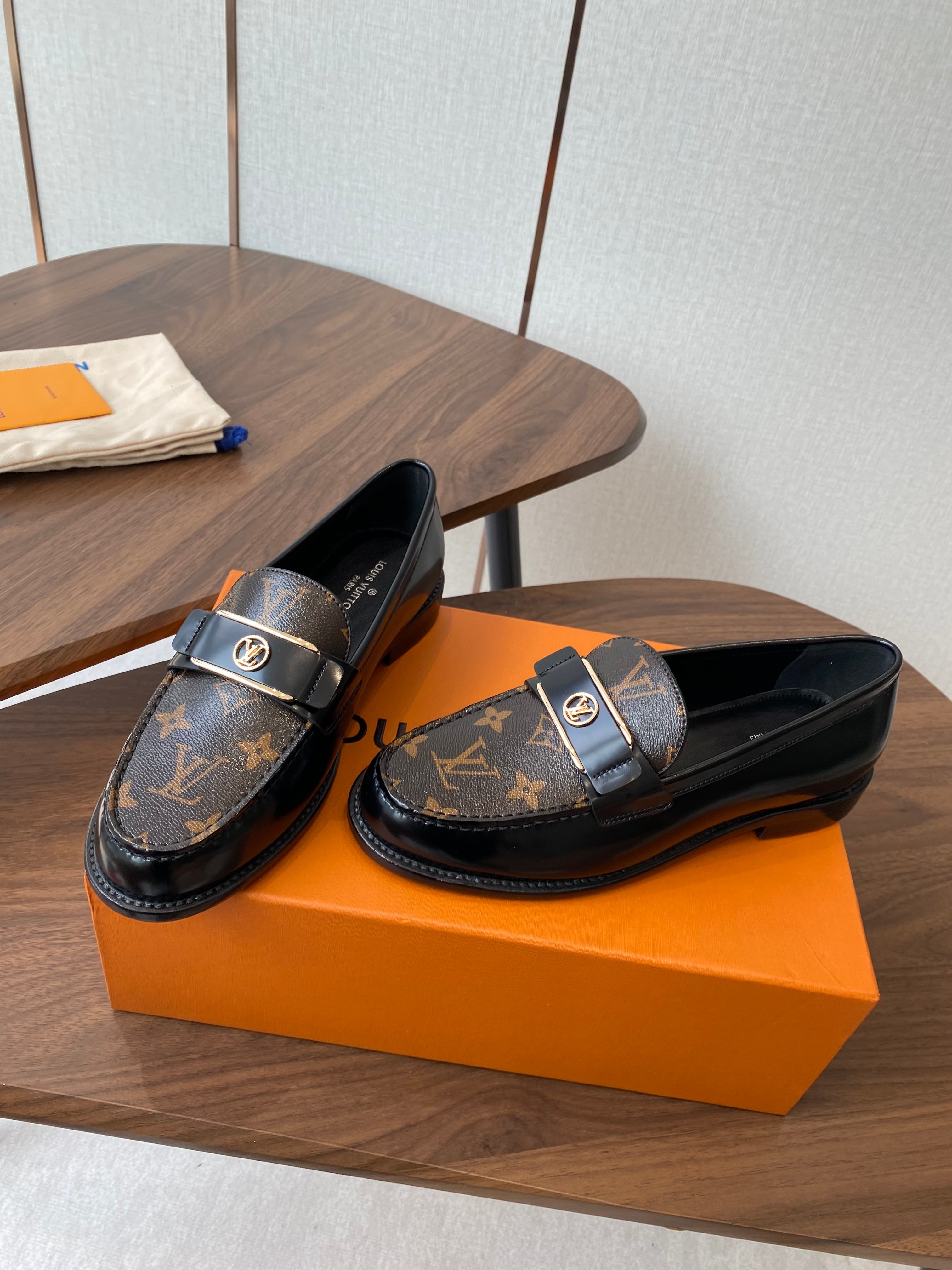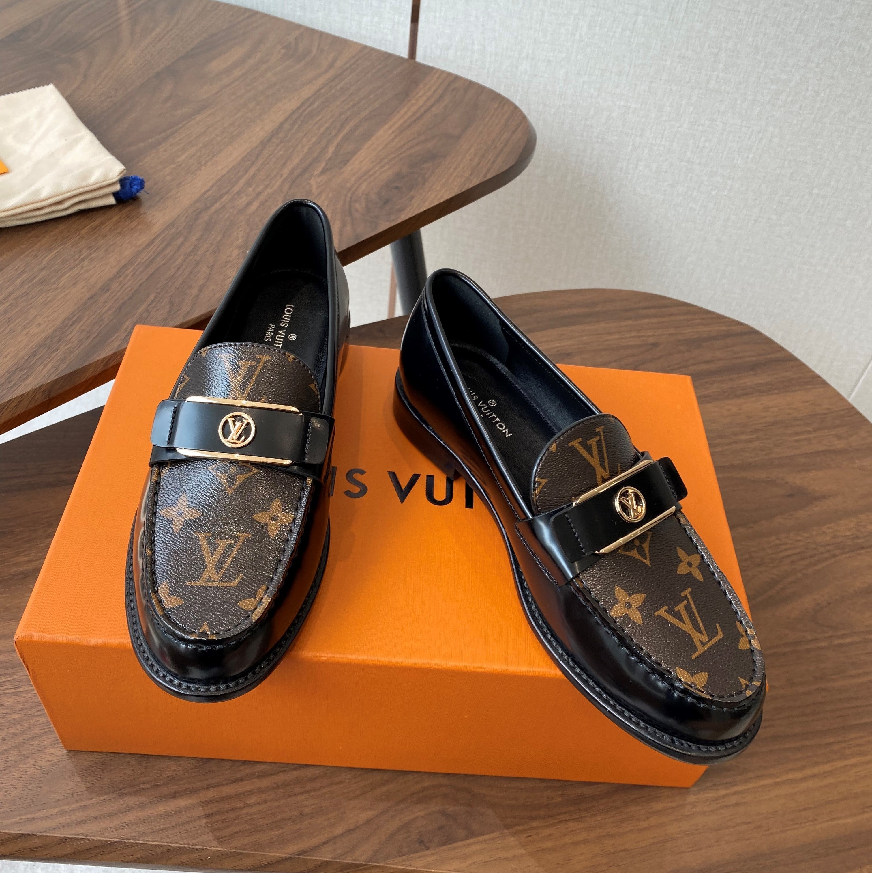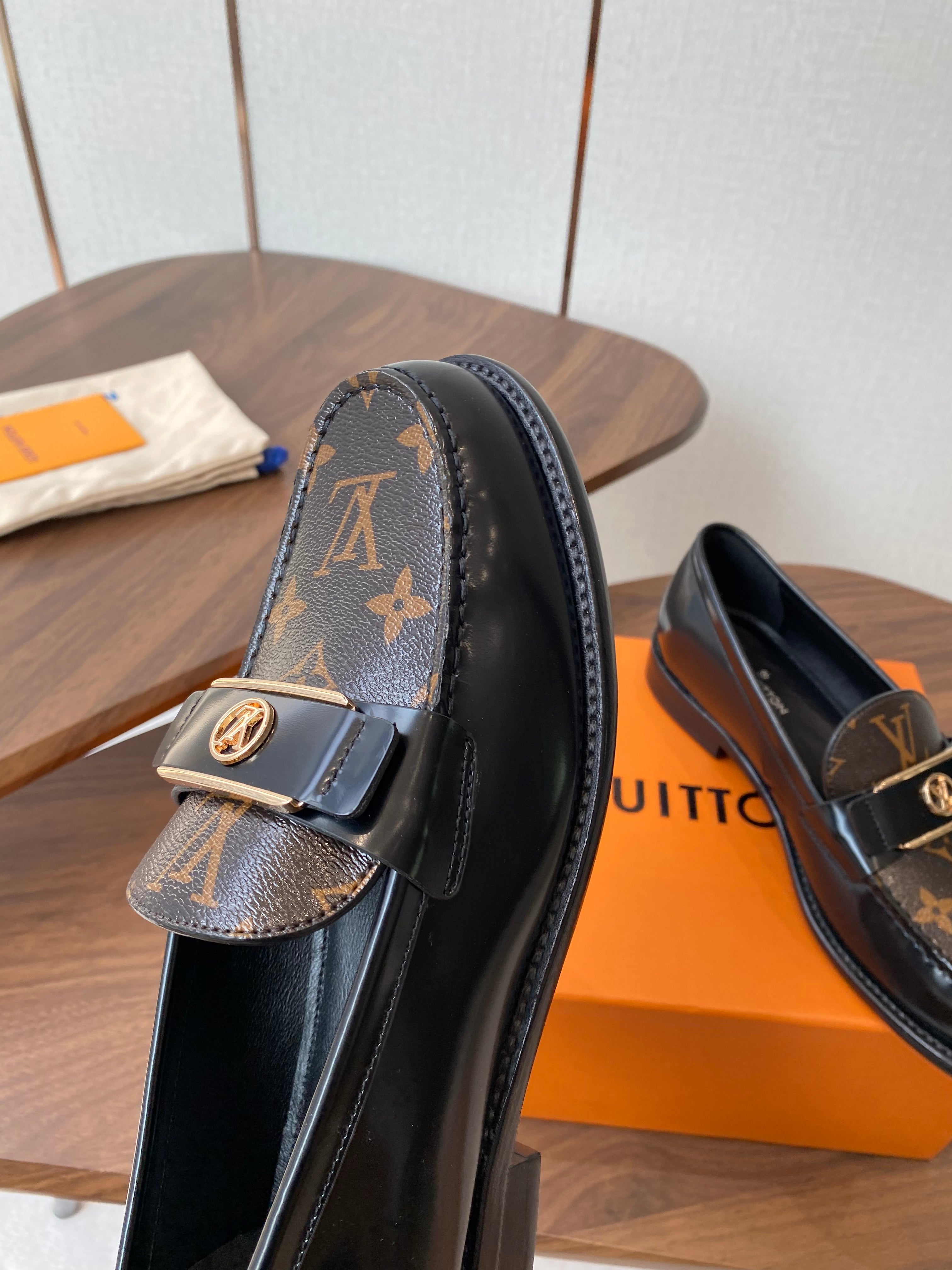 LV Academy Loafer Brown Monogram Canvas & Black Patent Leather 477728