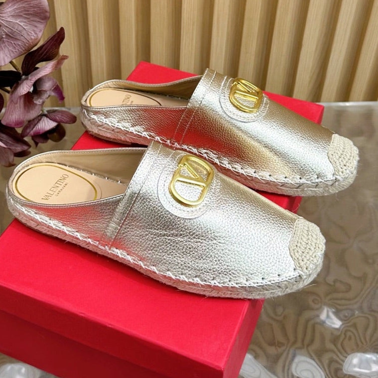 VT 2025 Signature Leather Espadrilles Metallic Cowhide 286507