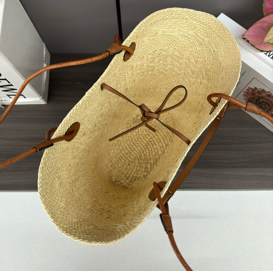 LOE ANAGRAM BASKET 46CM BAG IN NATURAL MIX BROWN IRACA PALM AND CALFSKIN