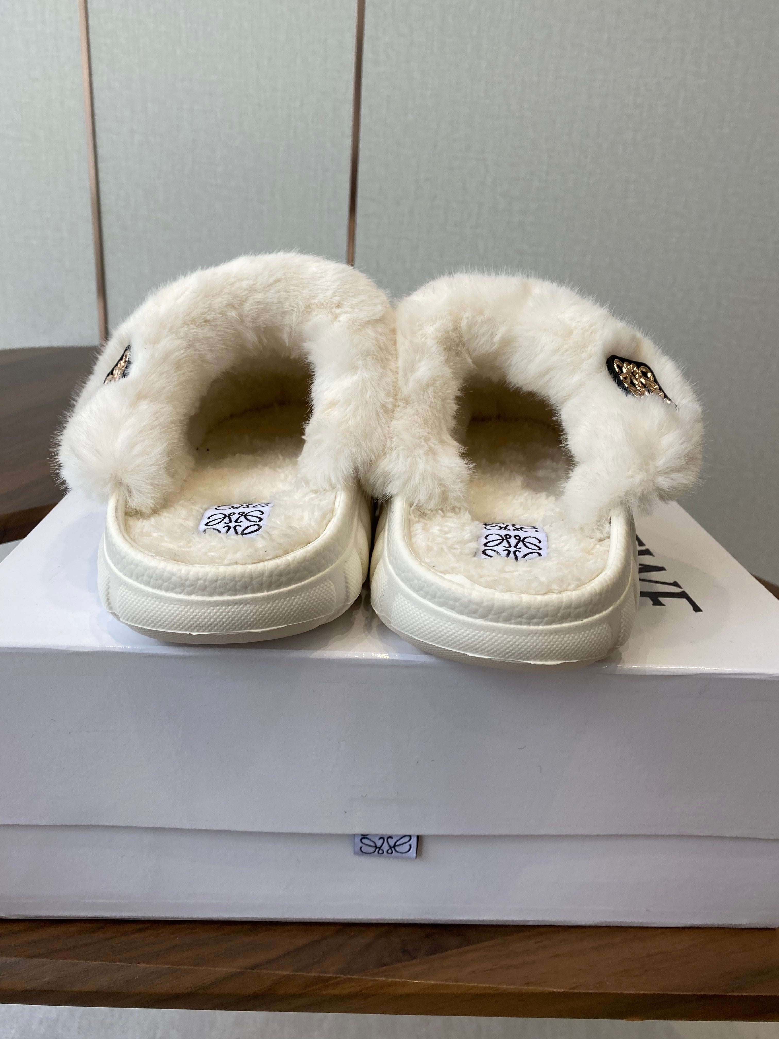 Loewe slippers white leather wool 477789