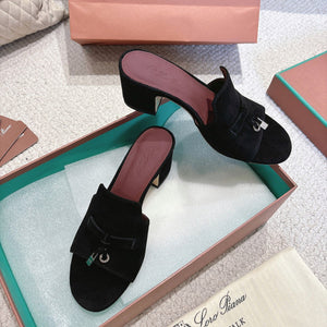 LP Charms Walk Babouche Loafer Black Suede With Rabbit Fur Lining 206239