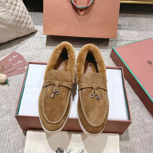 LP Summer Charms Walk Loafers Bottele Brown Suede With Rabbit Fur Lining 206262