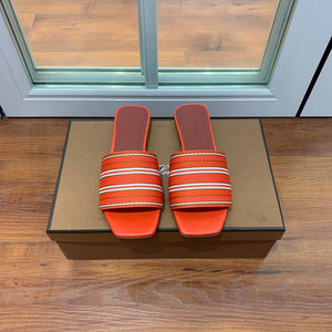 Suitcase Stripe Flat Sandals Brown Maroon Leather