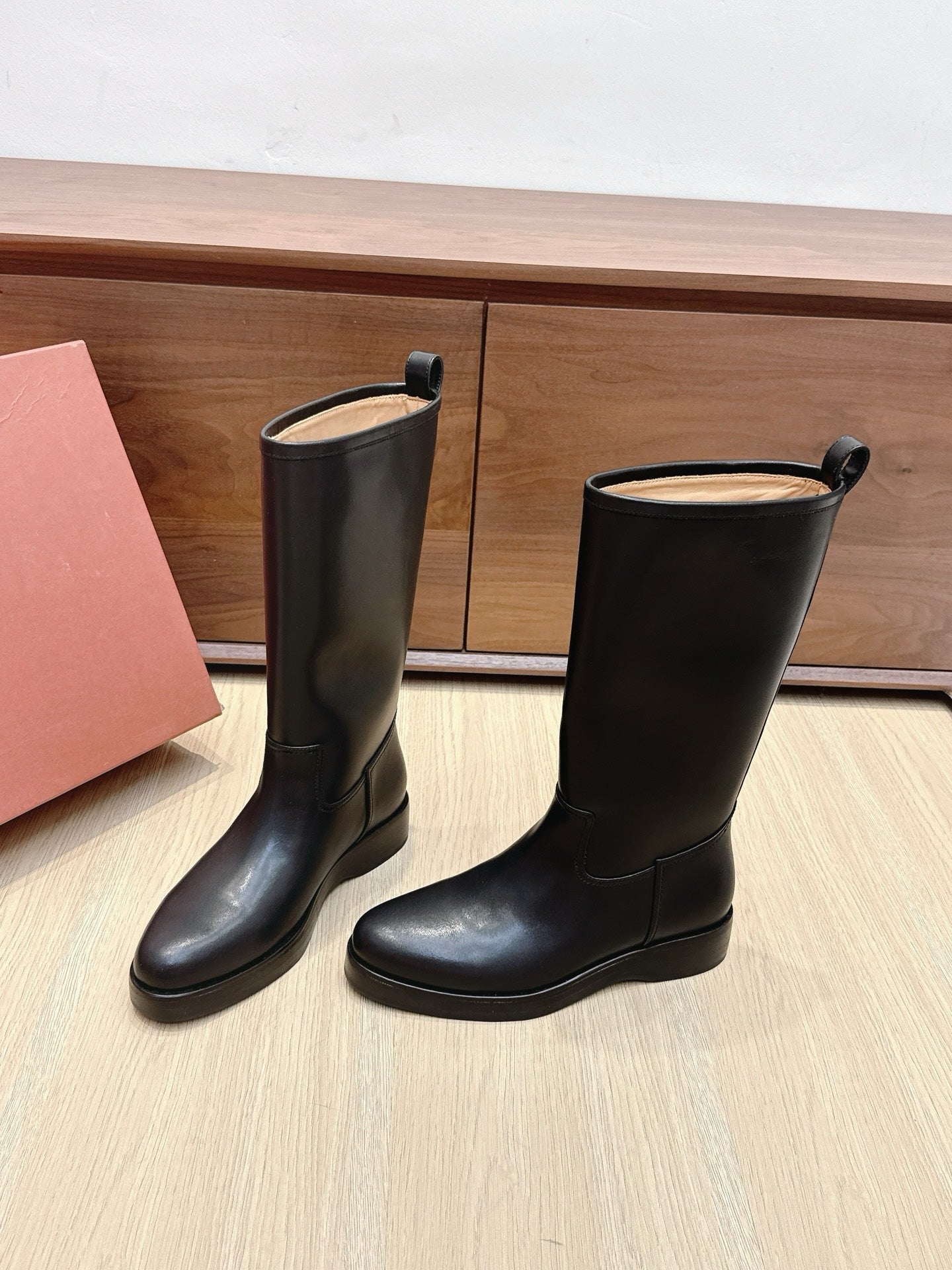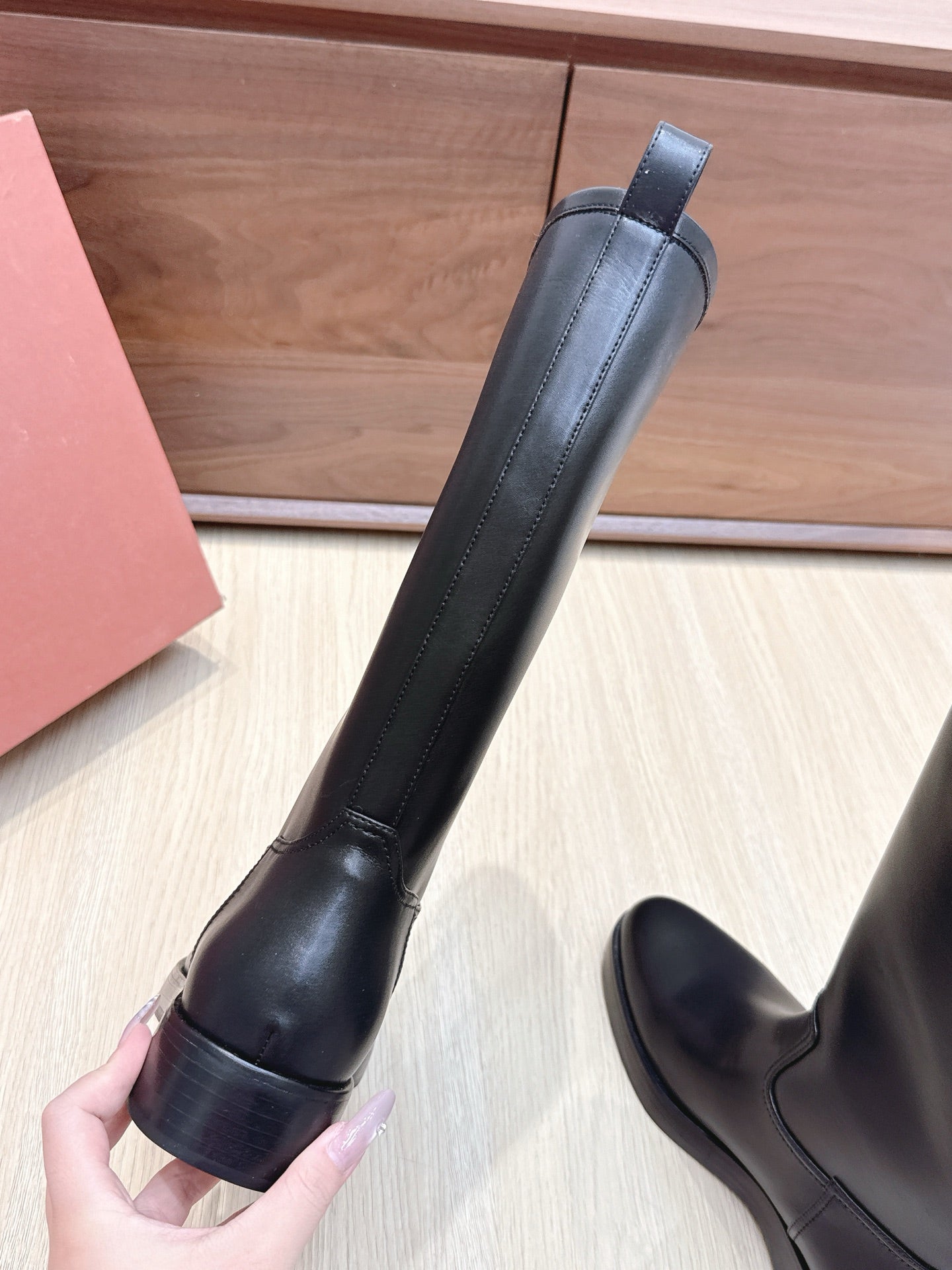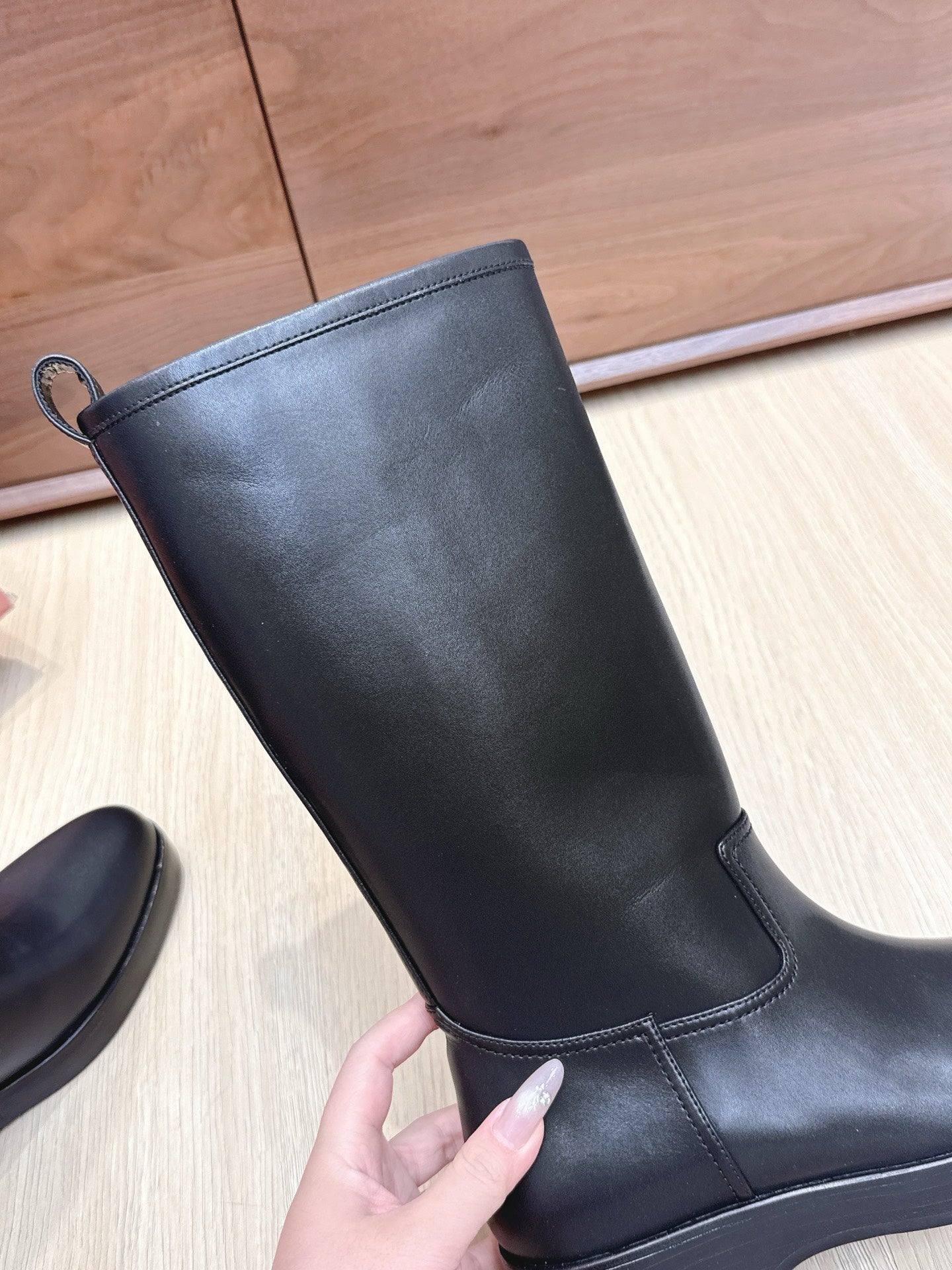 LP Mid-Calf Boots 20mm Black Cowhide Sheepskin 447745