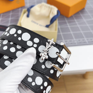 LV Bloom 30mm Mutilcolor Belt Silver Buckle Black Brown Leather