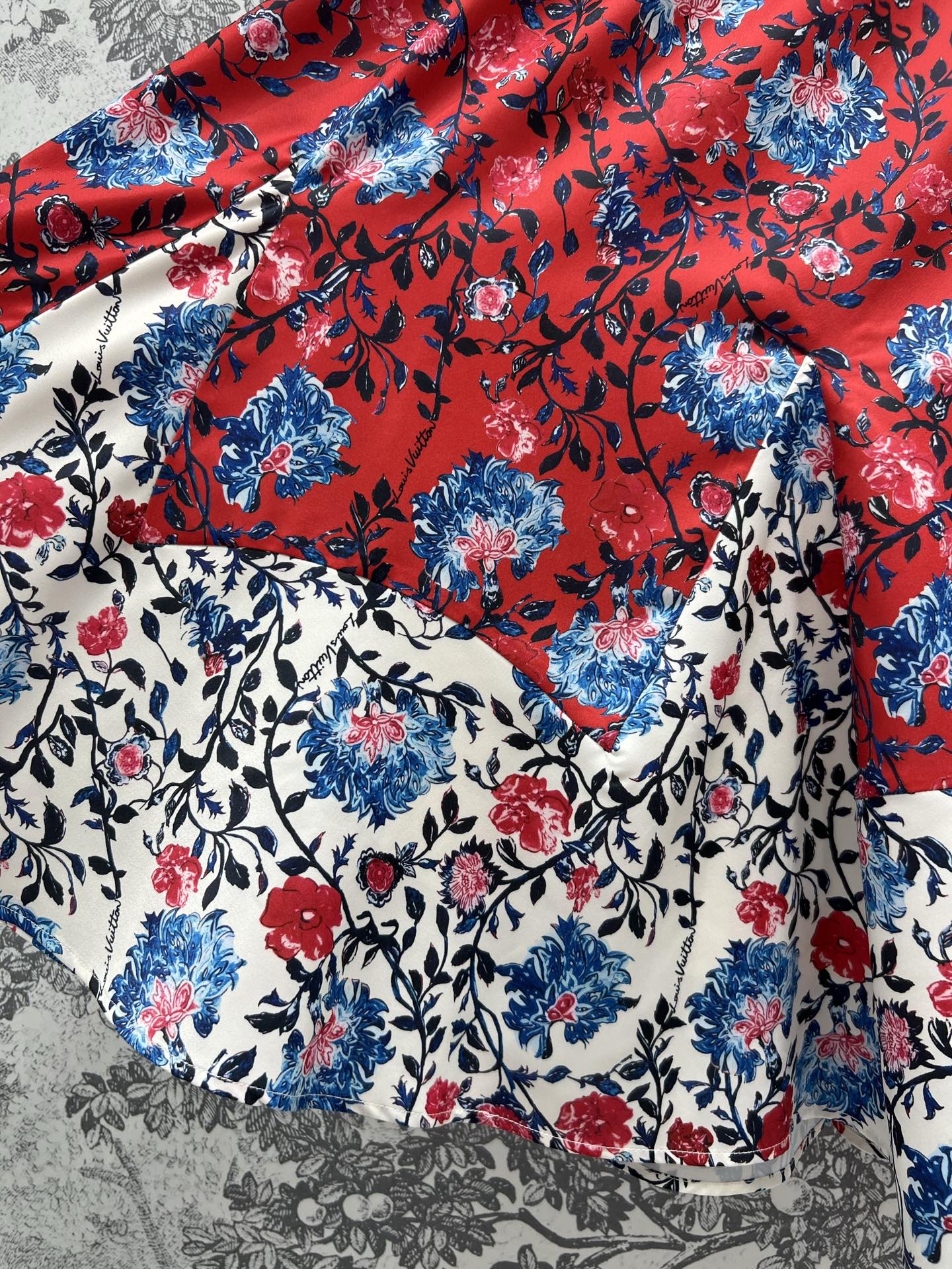 LV 25 Elastic Waist Old Flower Leather Skirt Red Poliester