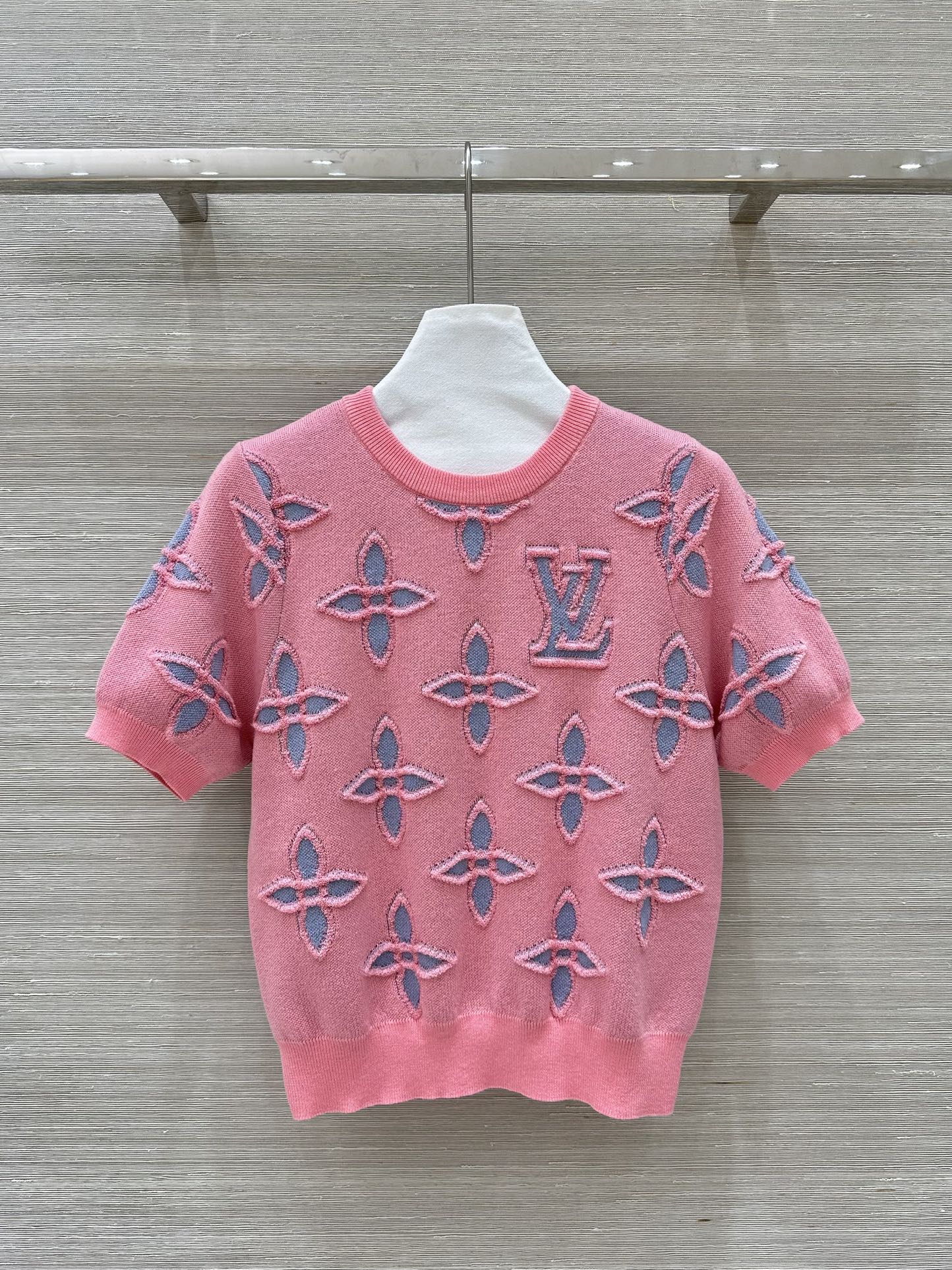 LV 25 Knitted Short-Sleeved Top Pink Wool