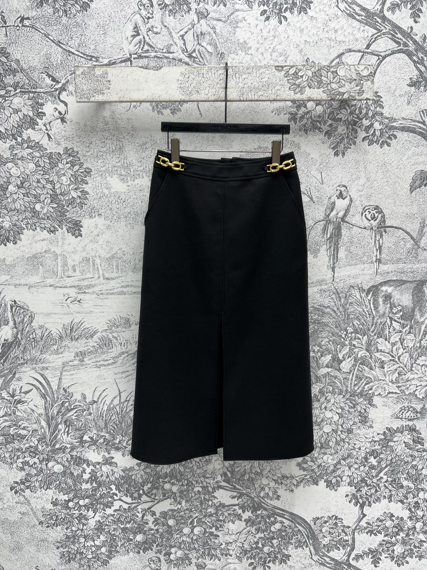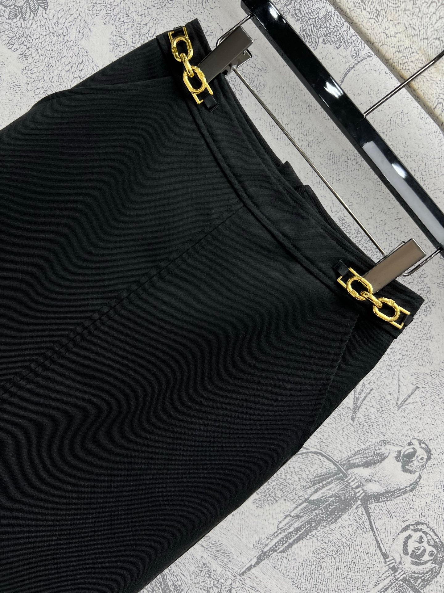 LV 25 Long Skirt Logo Black Polyamide Wool