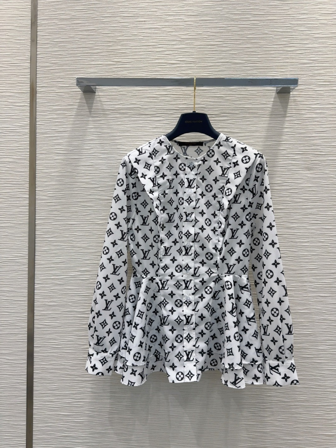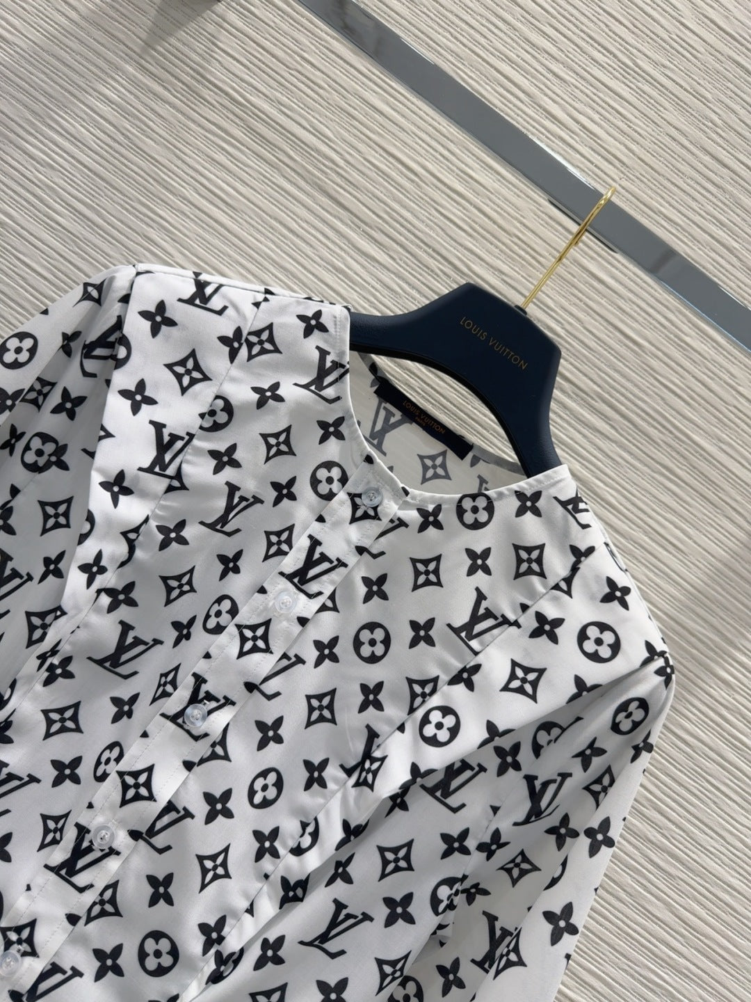 LV 25 Luxurious Advanced Shirt White Blue Polyester