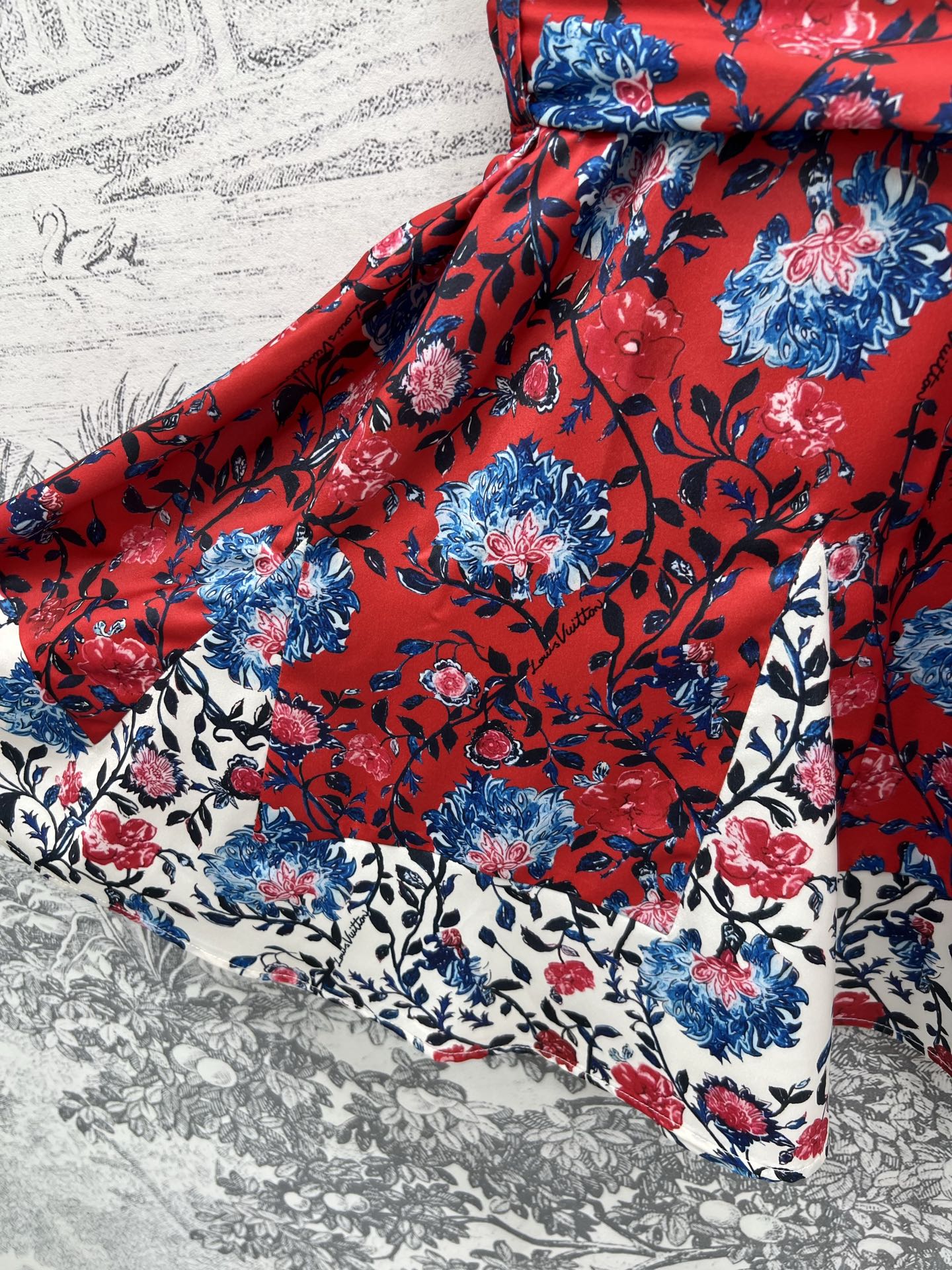 LV 25 Retro Floral Pattern Suspender Flower Dress Red Poliester
