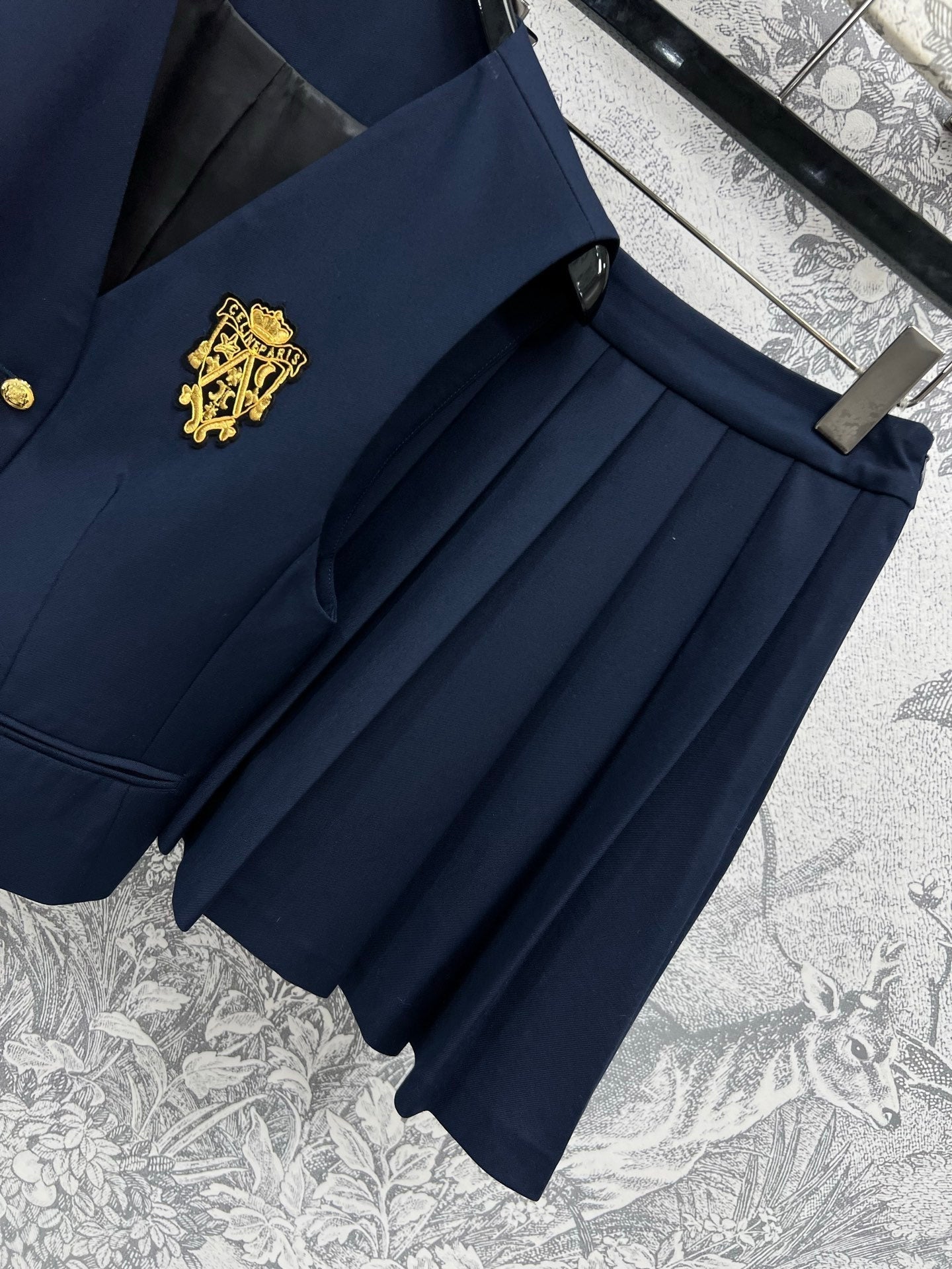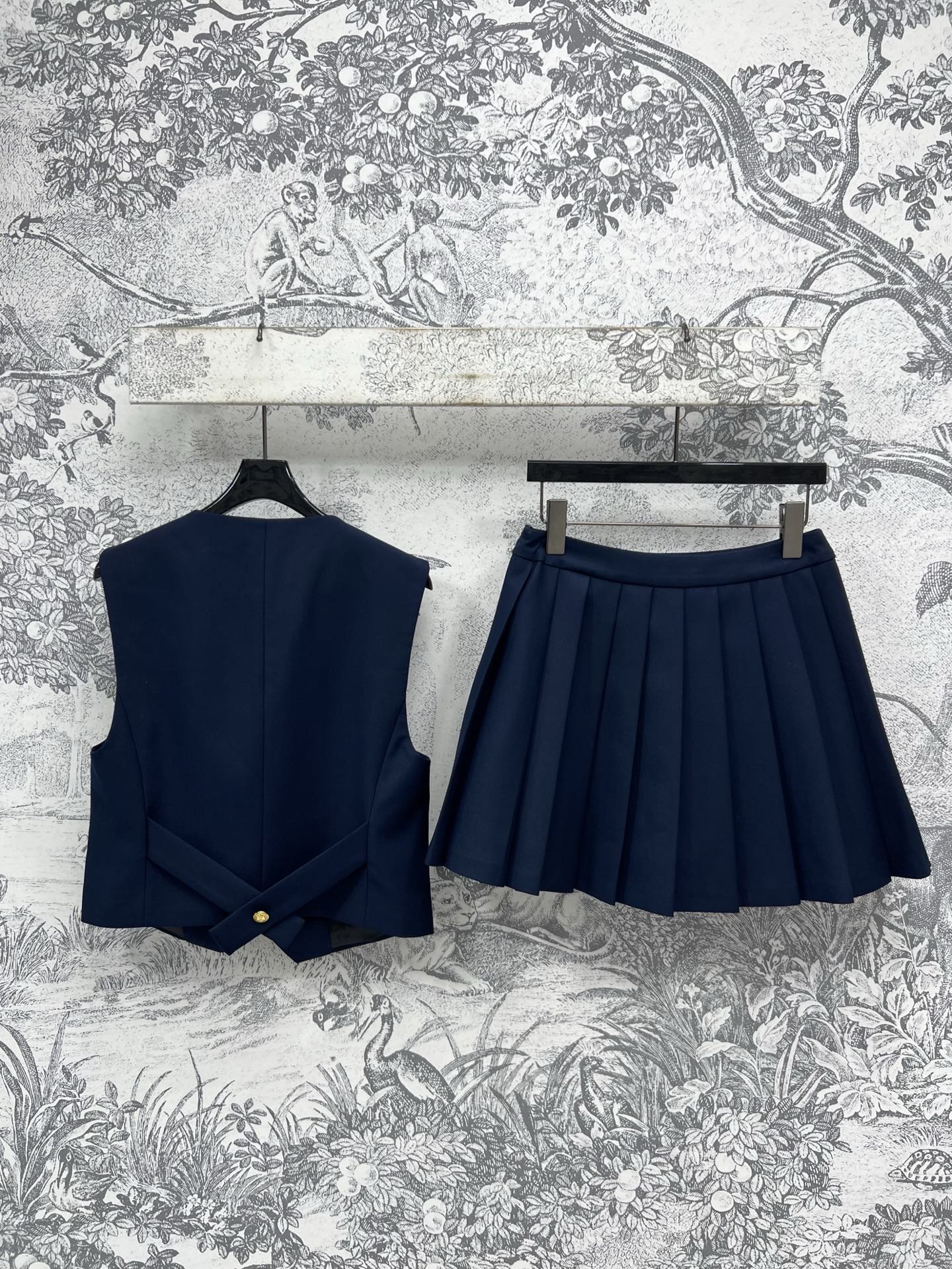 LV 25 Slight Waist Design Set Vest Blue Polyester