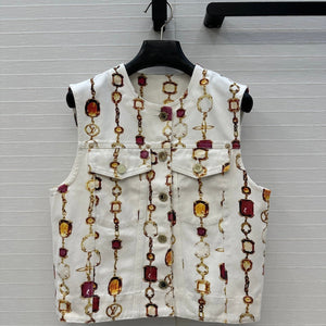 LV 25 Classic Elements Colorful Gemstone Necklace Vest White Cotton