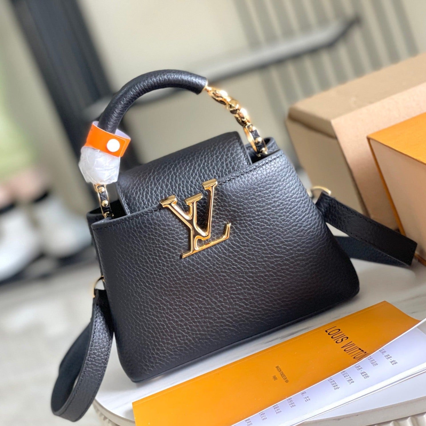 CAPUCINES MINI 21 BLACK TAURILLON GOLD HARDWARE