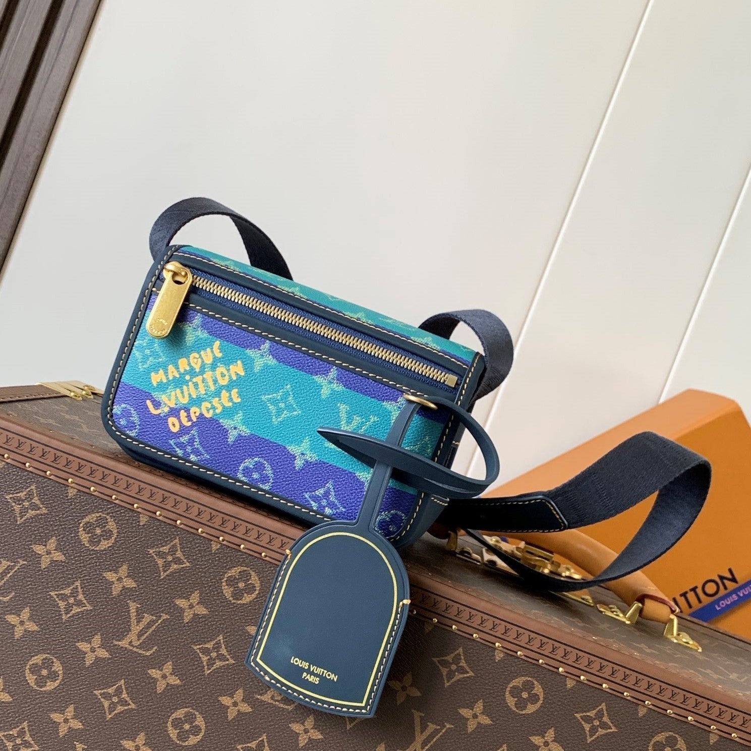 LV Bosphore Mini Handbag 19cm Purple Blue Canvas & Leather trim
