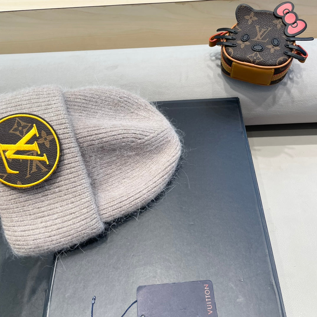 KNITTED BEANIE HAT IN LIGHT BEIGE WOOL AND RABBIT FUR 417756