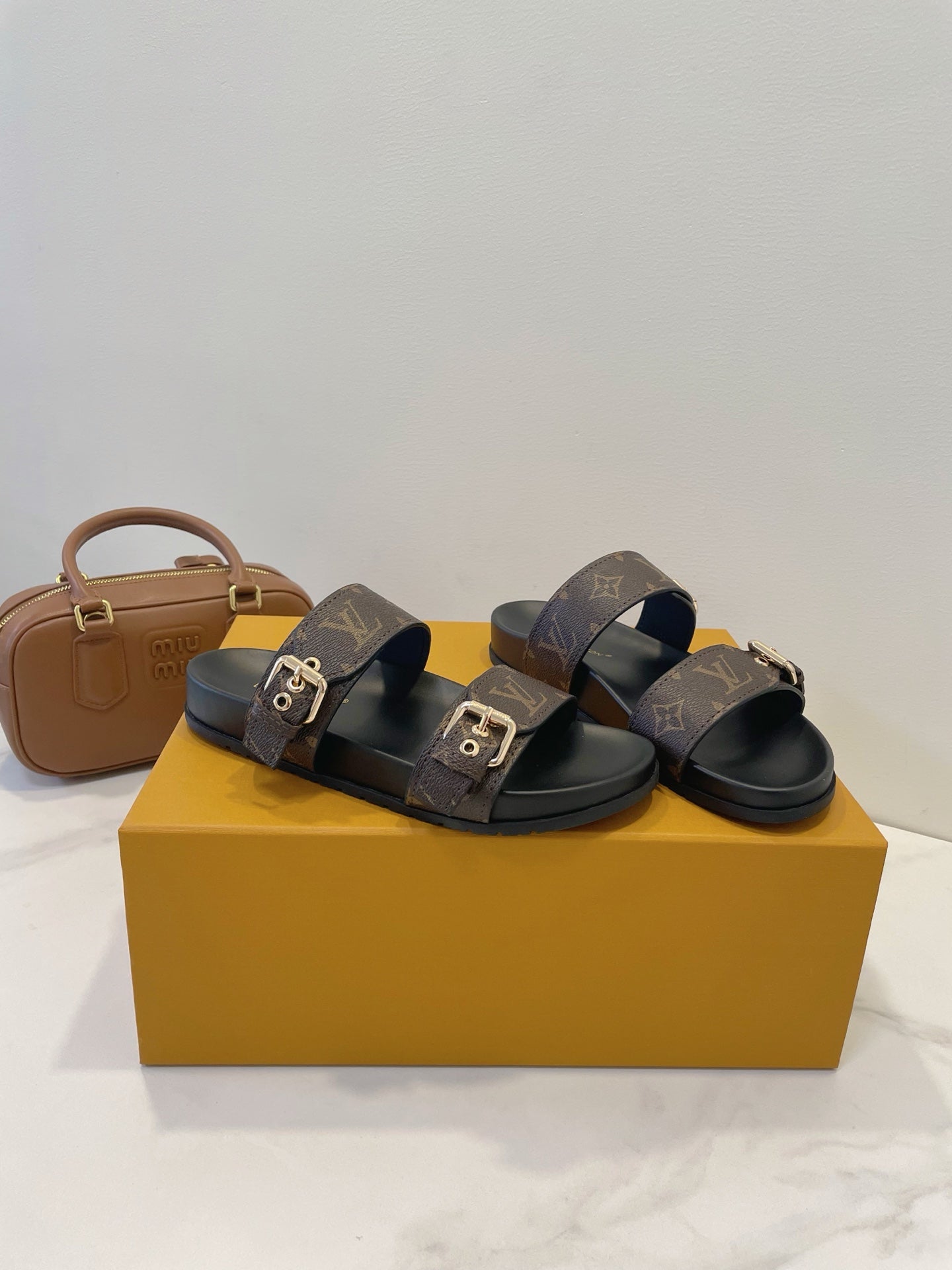 Bom Dia Flat Comfort Mule Brown Monogram canvas 241332