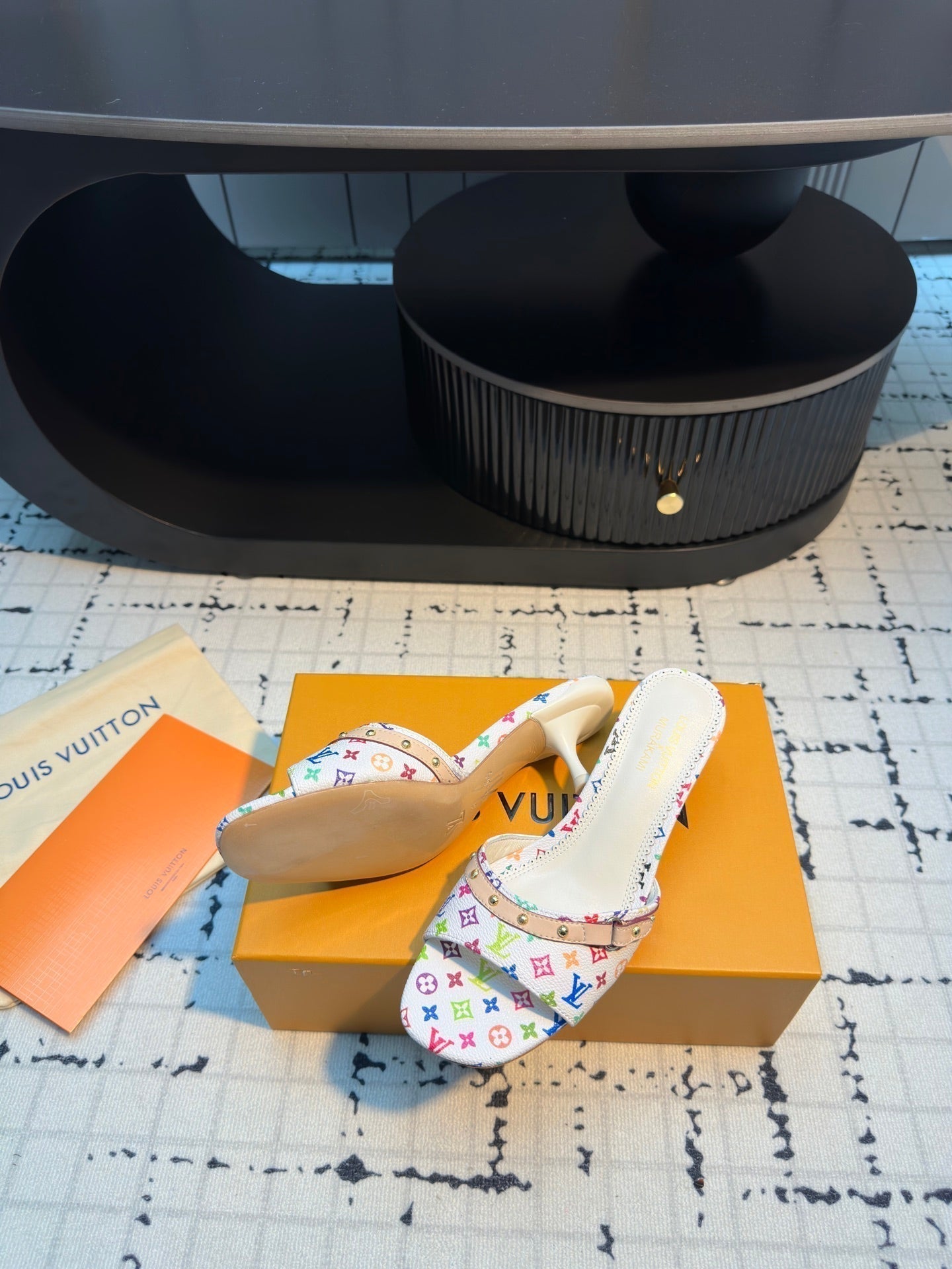 LV Mule 6AM LV x TM 55mm White with Monogram Multicolore Leather 218907