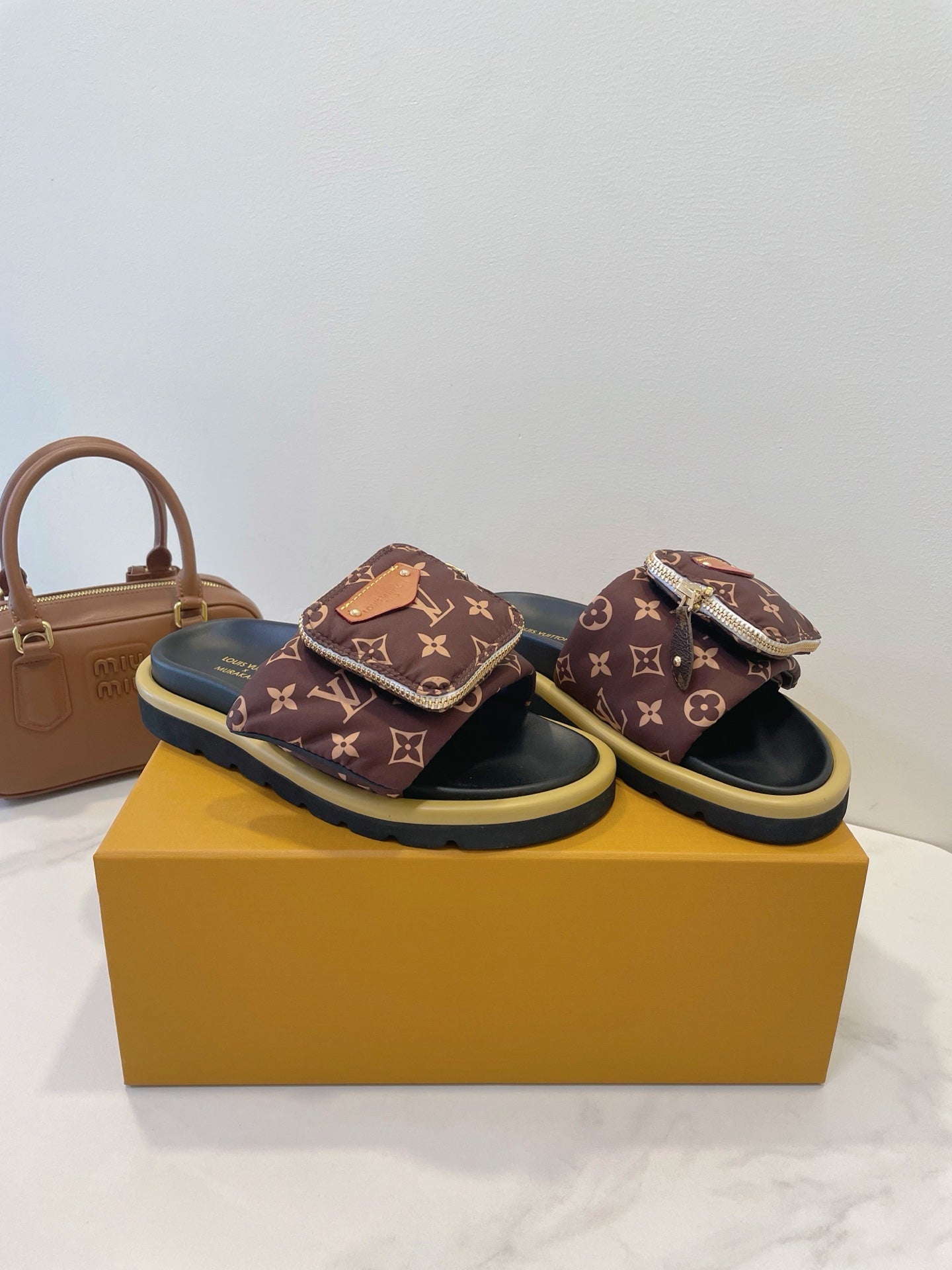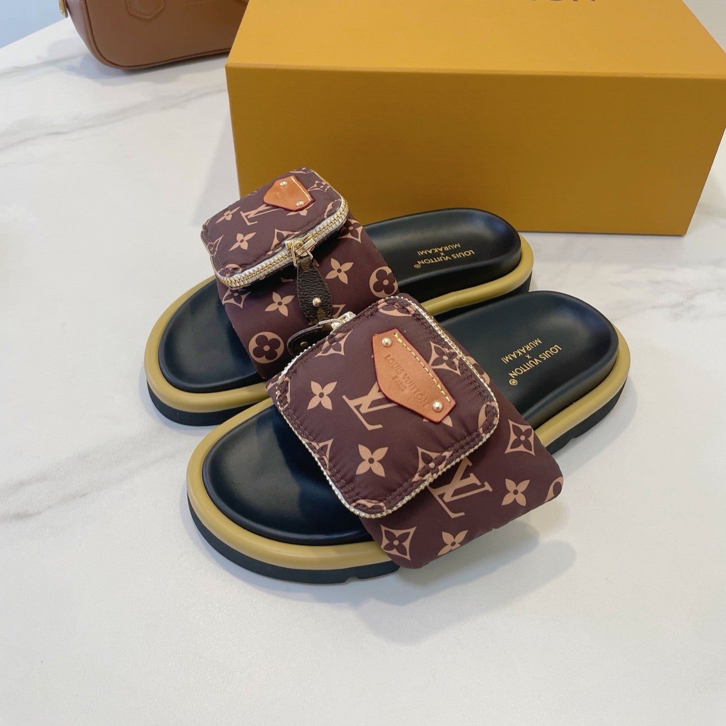 LV x TM Pool Pillow Flat Comfort Mule Brown Monogram Nylon 241325