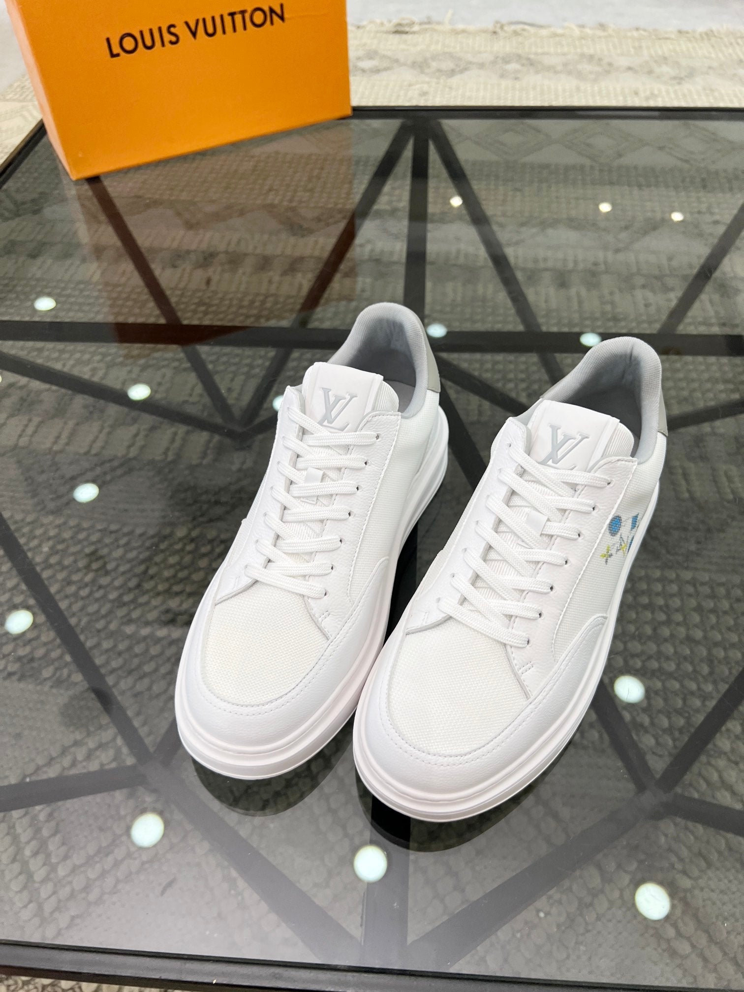 BEVERLY HILLS TRAINERS WHITE MIX GREY CALFSKIN AND MESH FABRIC