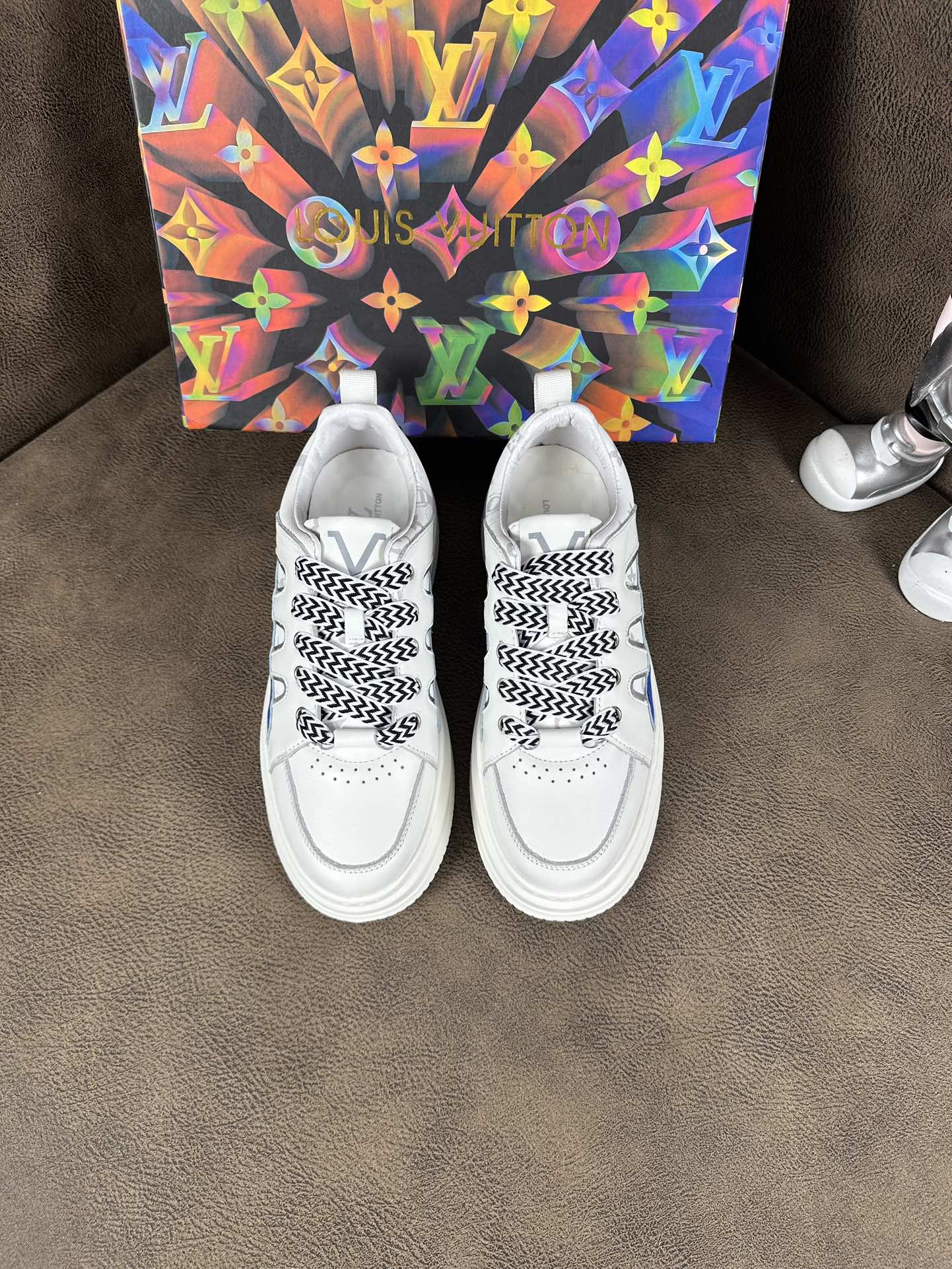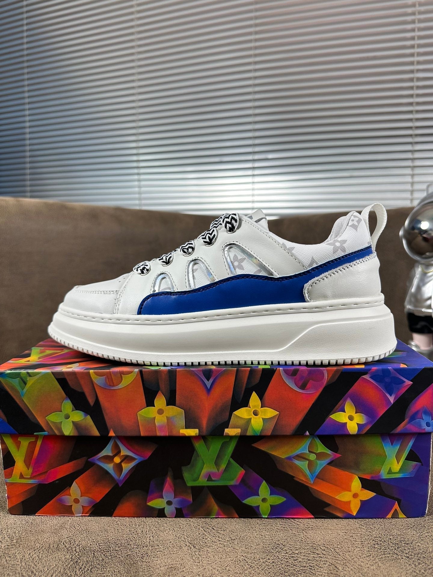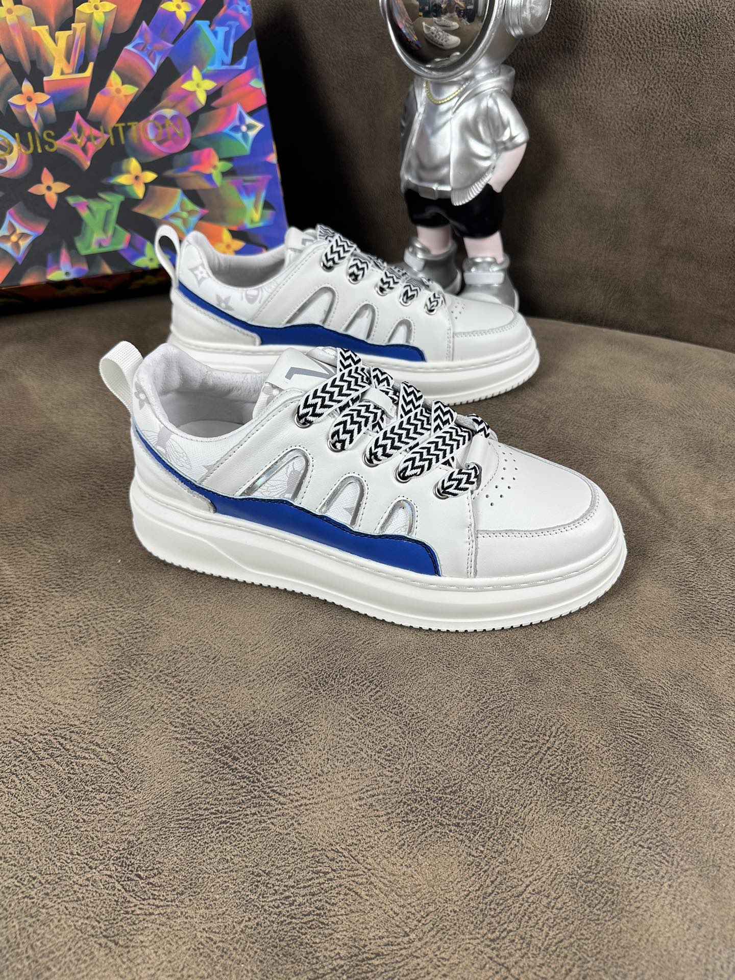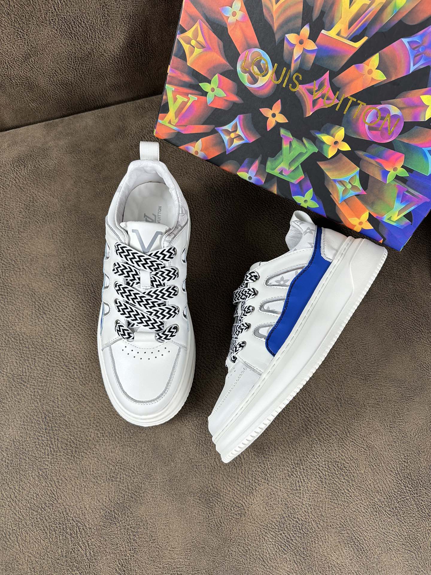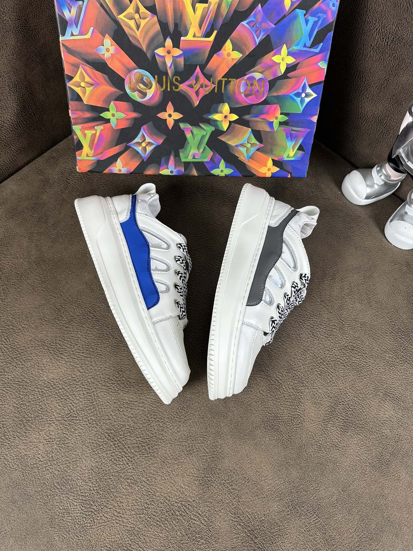 LV TRAINER SHOES IN WHITE MIX BLUE CALFSKIN