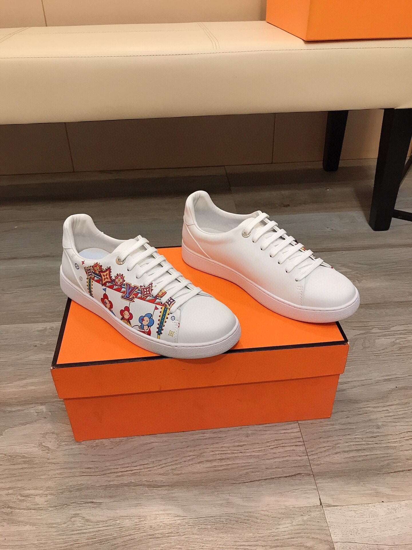 LV TRAINER WHITE CALFSKIN WITH COLORFUL PATTERN