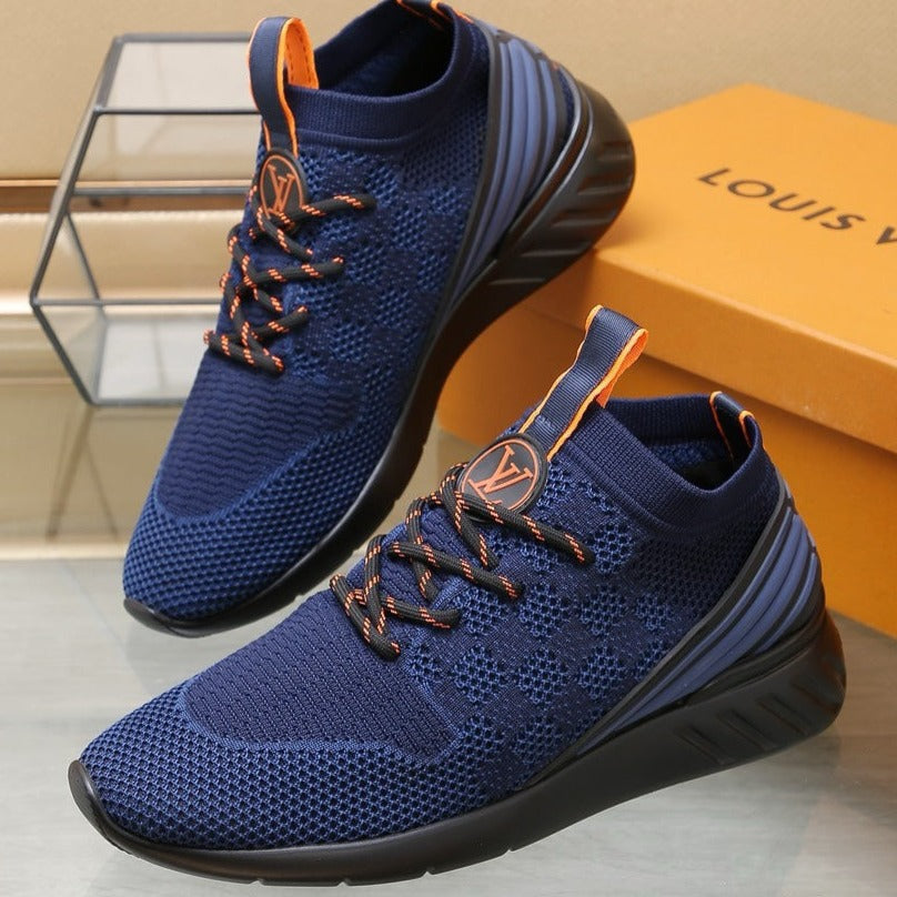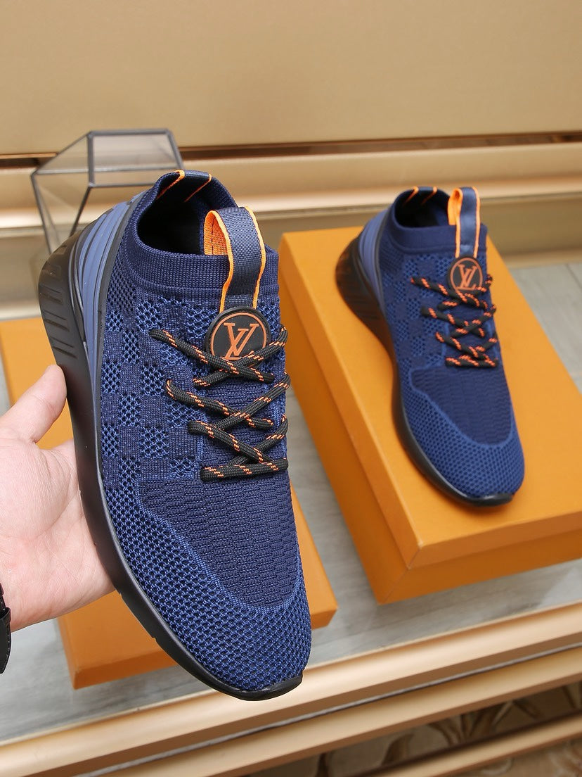 LV TRAINERS DAMIER NAVY BLUE MESH FABRIC