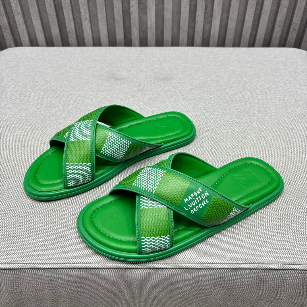 • Premium LV men's slippers, synchronizing with the 2024 early autumn runway collection. The slippers feature a high-quality fabric upper and an original, exclusive comfort sole, ensuring exceptional comfort. These are original factory-followed products.