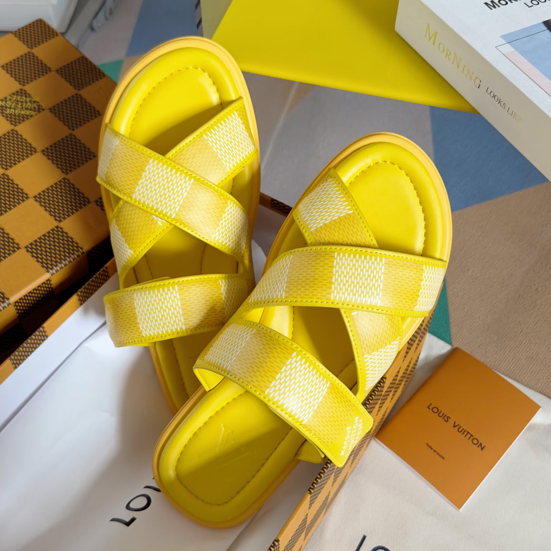 LV VENICE MULE SLIDE SANDALS MONOGRAM LEMON YELLOW