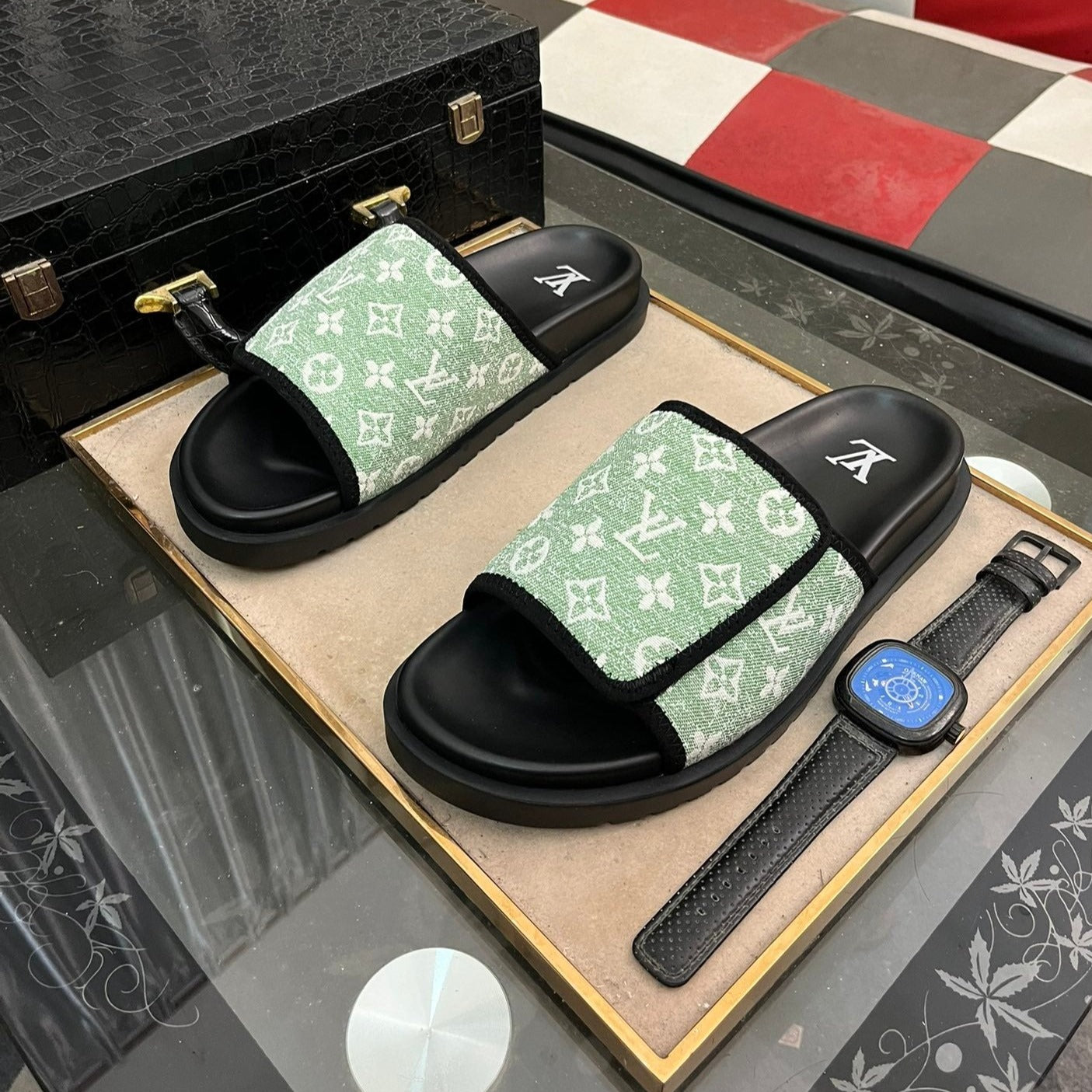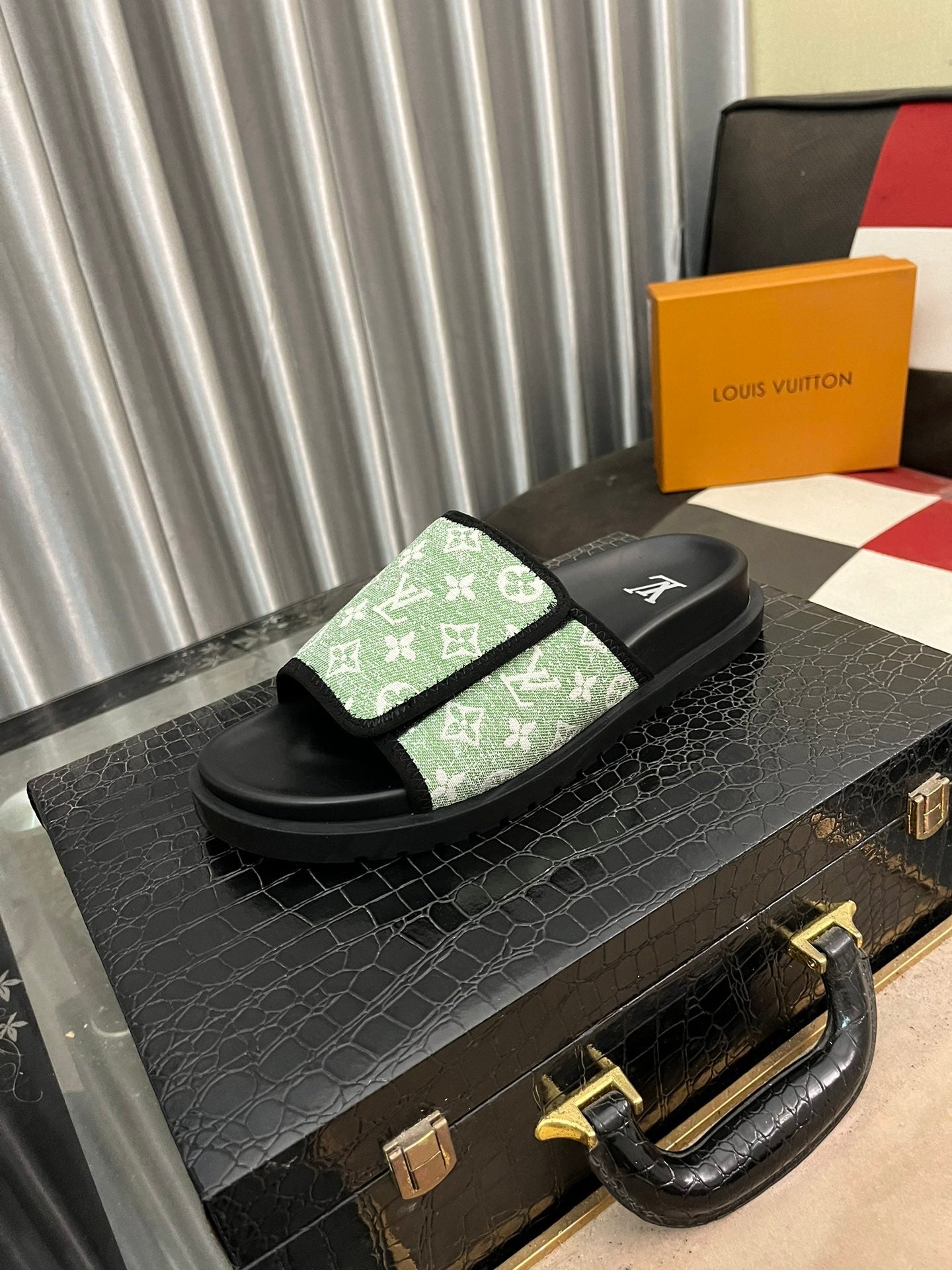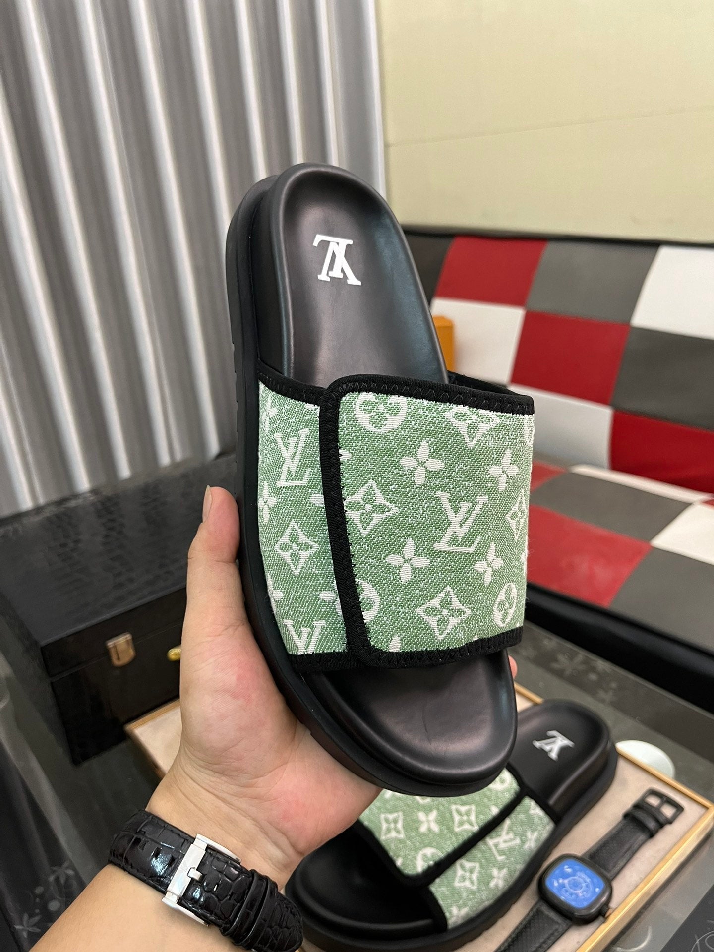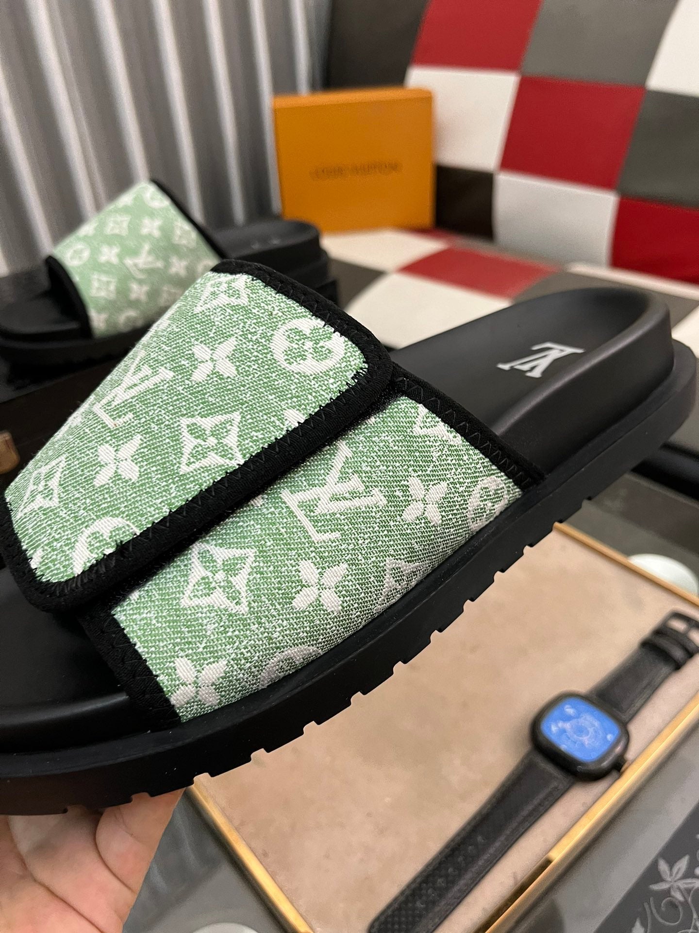 MIAMI MULE IN LIGHT GREEN MONOGRAM JACQUARD