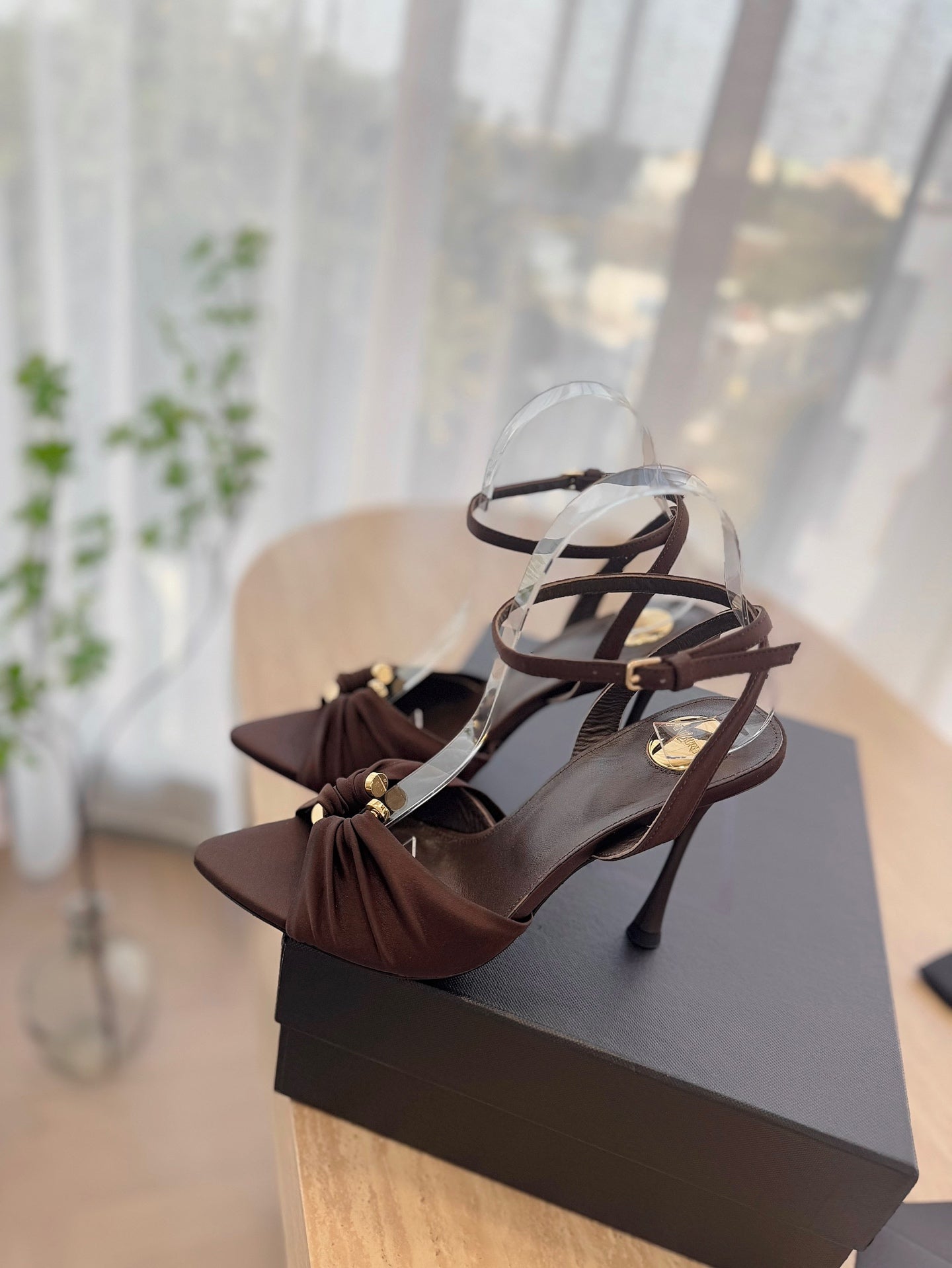 LOLA SANDAL 10 CM IN CHOCOLATE BROWN VISCOSE AND SILK