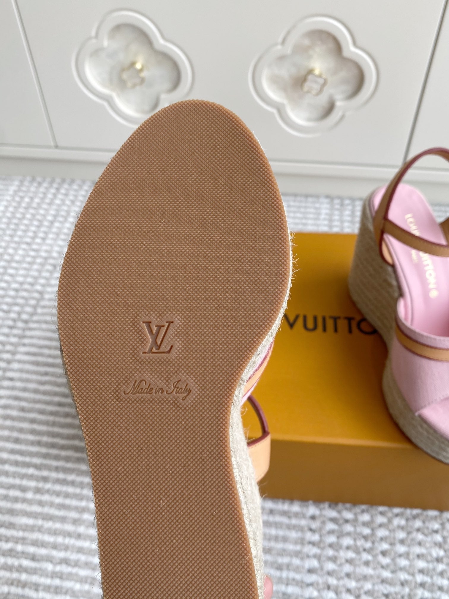 LV Pink Denim Wedge Sandals 11.5cm Pink Sheepskin Lining 291582