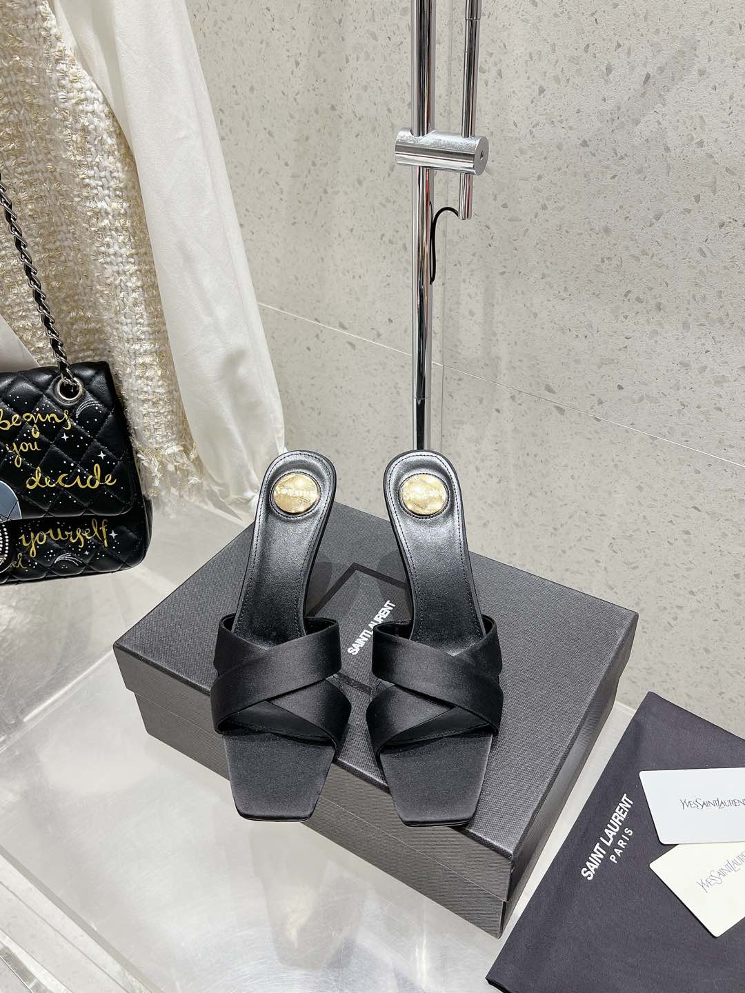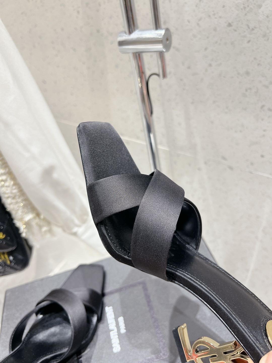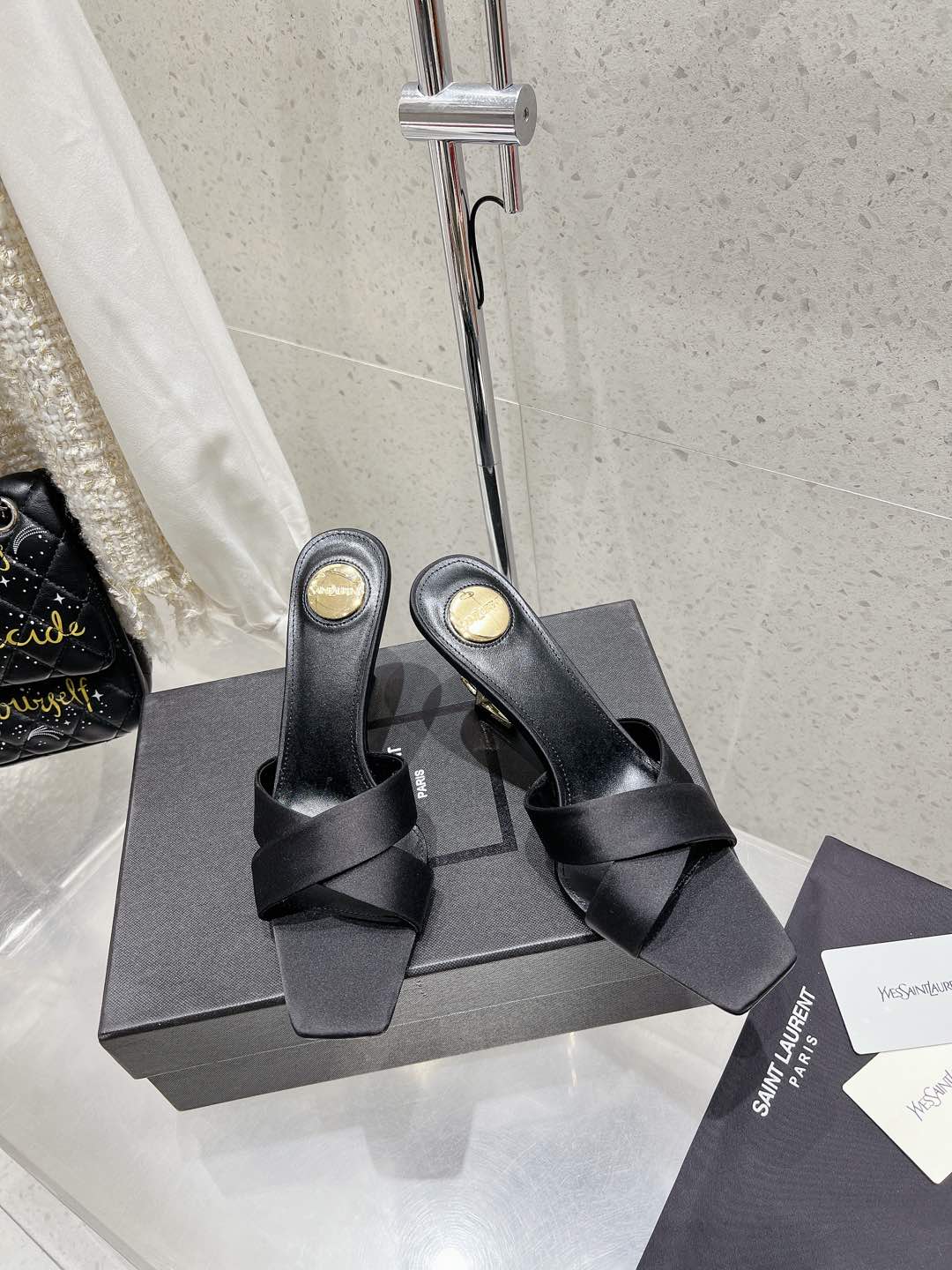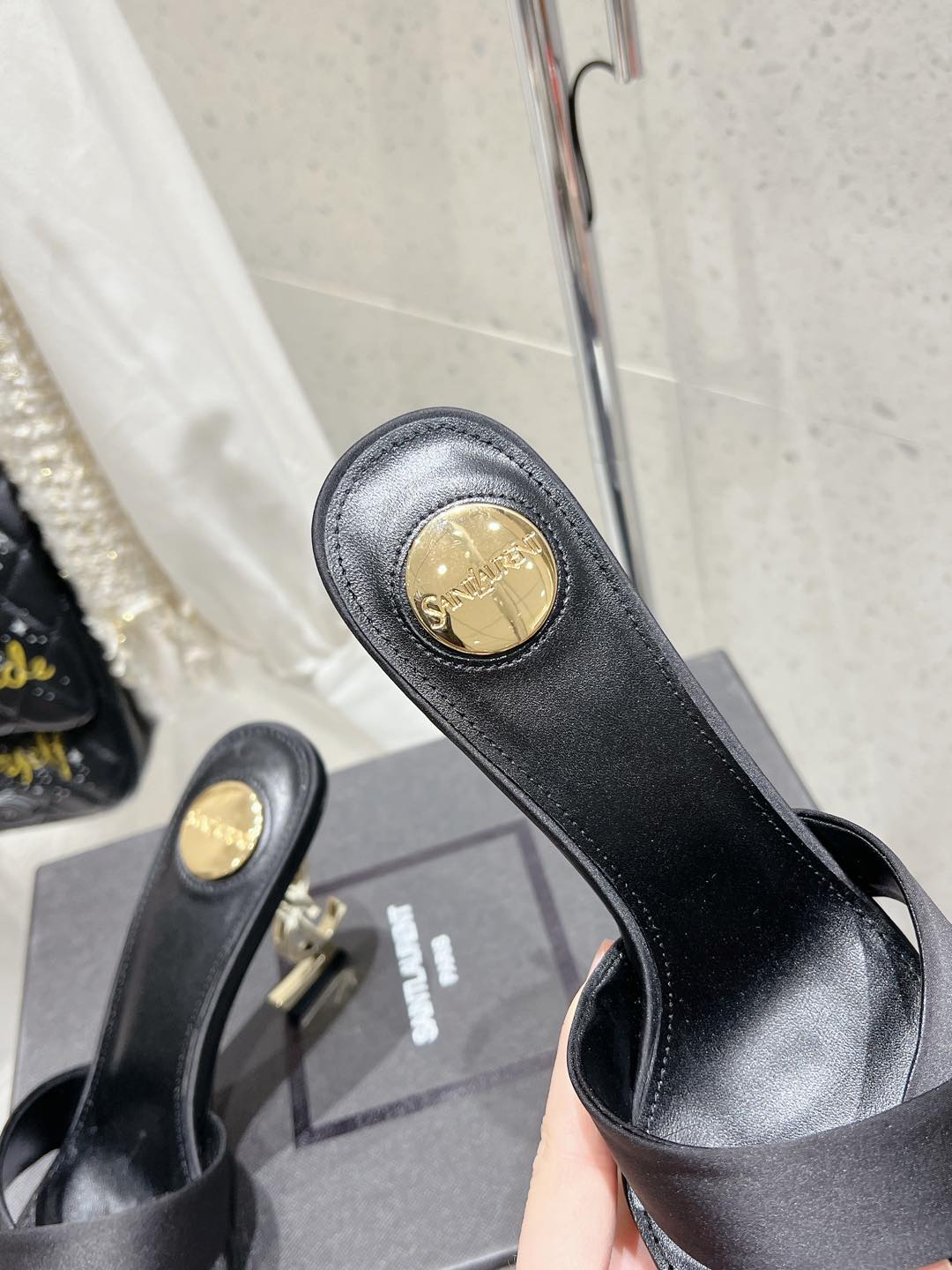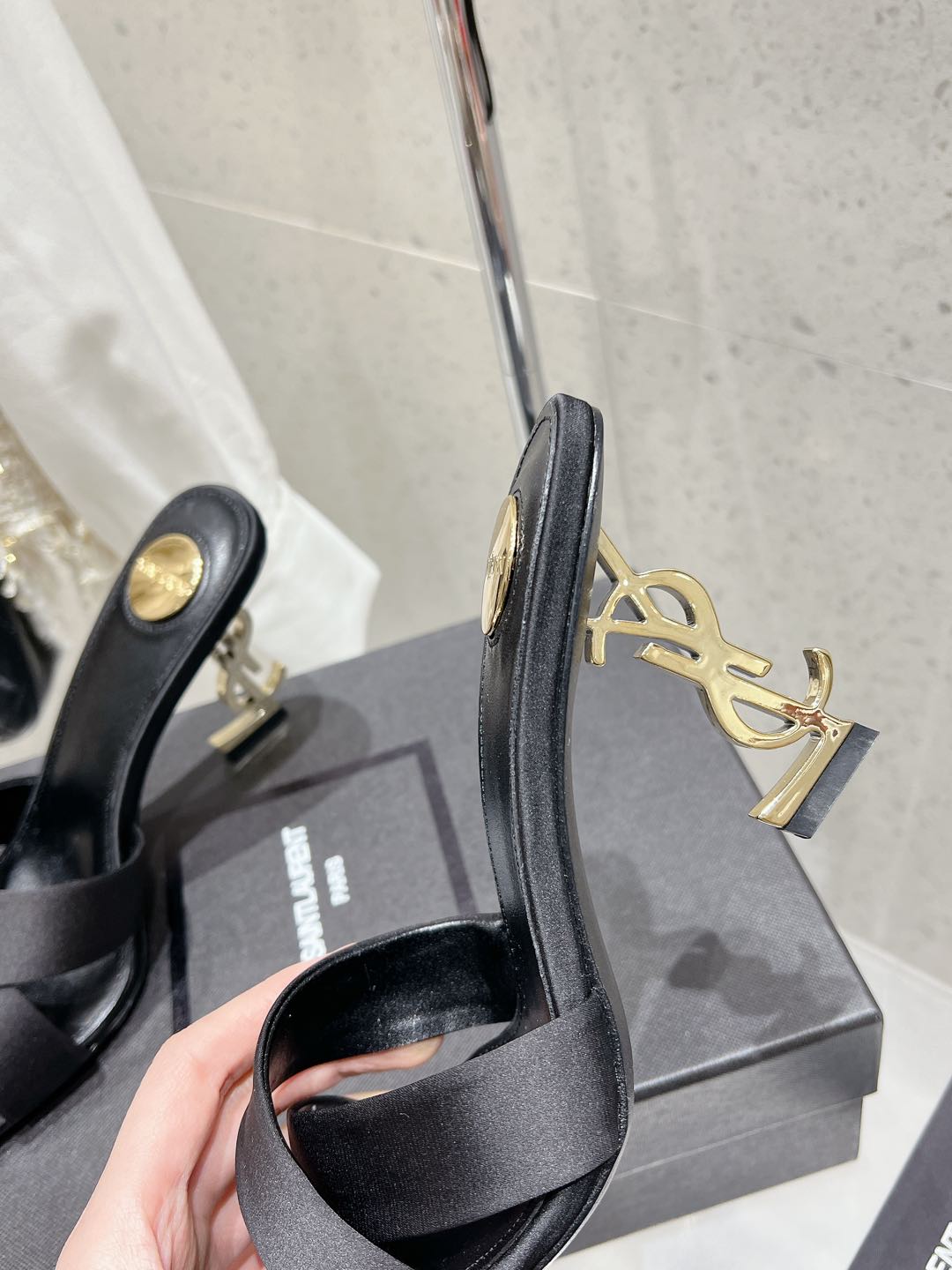 OPYUM HIGH MULES 85 MM IN BLACK SATIN CREPE