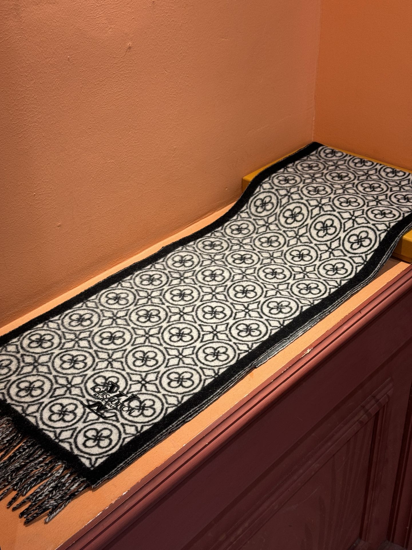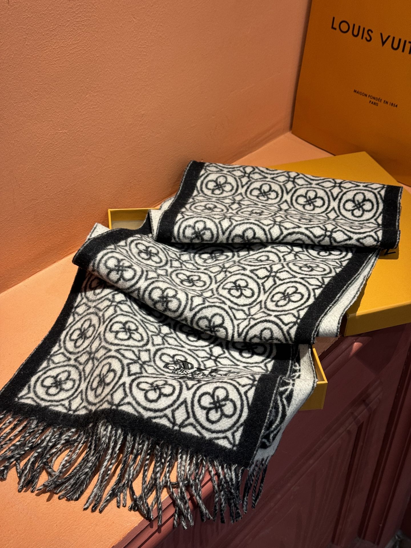 FLOWER MONOGRAM SCARF 180 CM IN BLACK MIX WHITE CASHMERE 388305