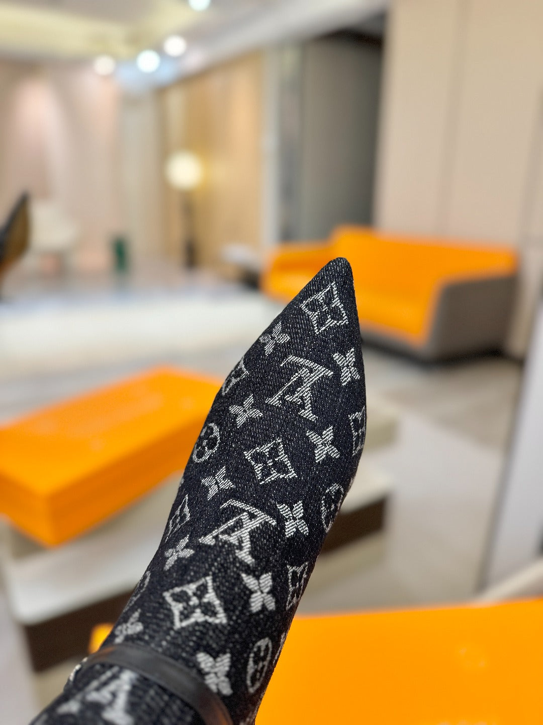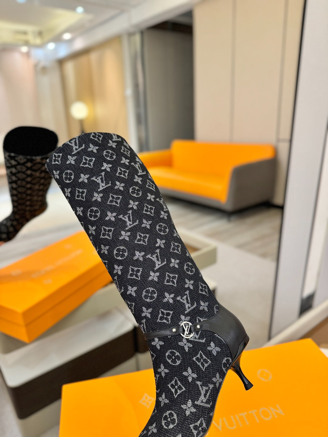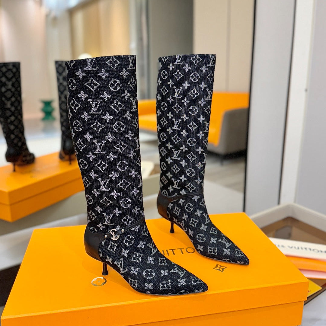 LV 6AM High Boots 55mm Heel Navy Blue Denim 504803