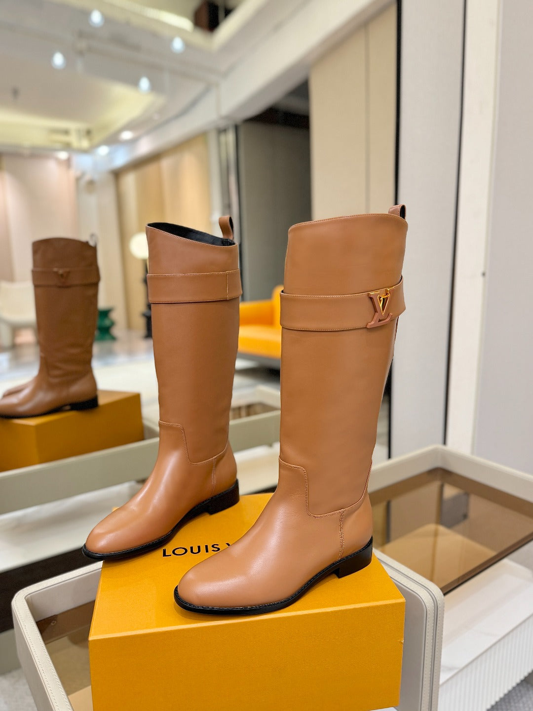 LV Donkey Metal Buckle-Decorated Knight Boots Brown Cowhide 504712