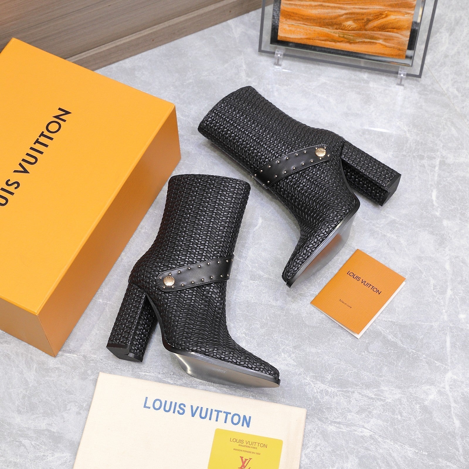 LV x Silhouette Basketweave Pattern Boots 95mm Black Leather 425684