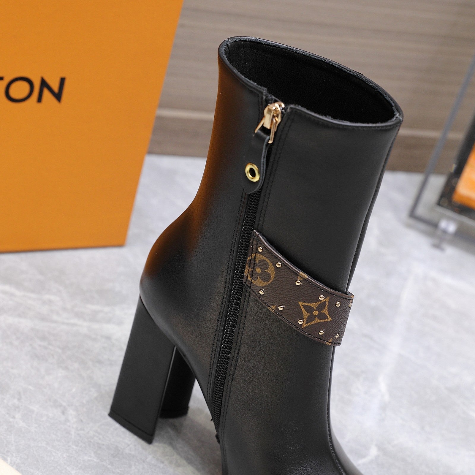 LV x Silhouette V-heel Pointed Toe Knight Boots 95mm Black Sheepskin 425683