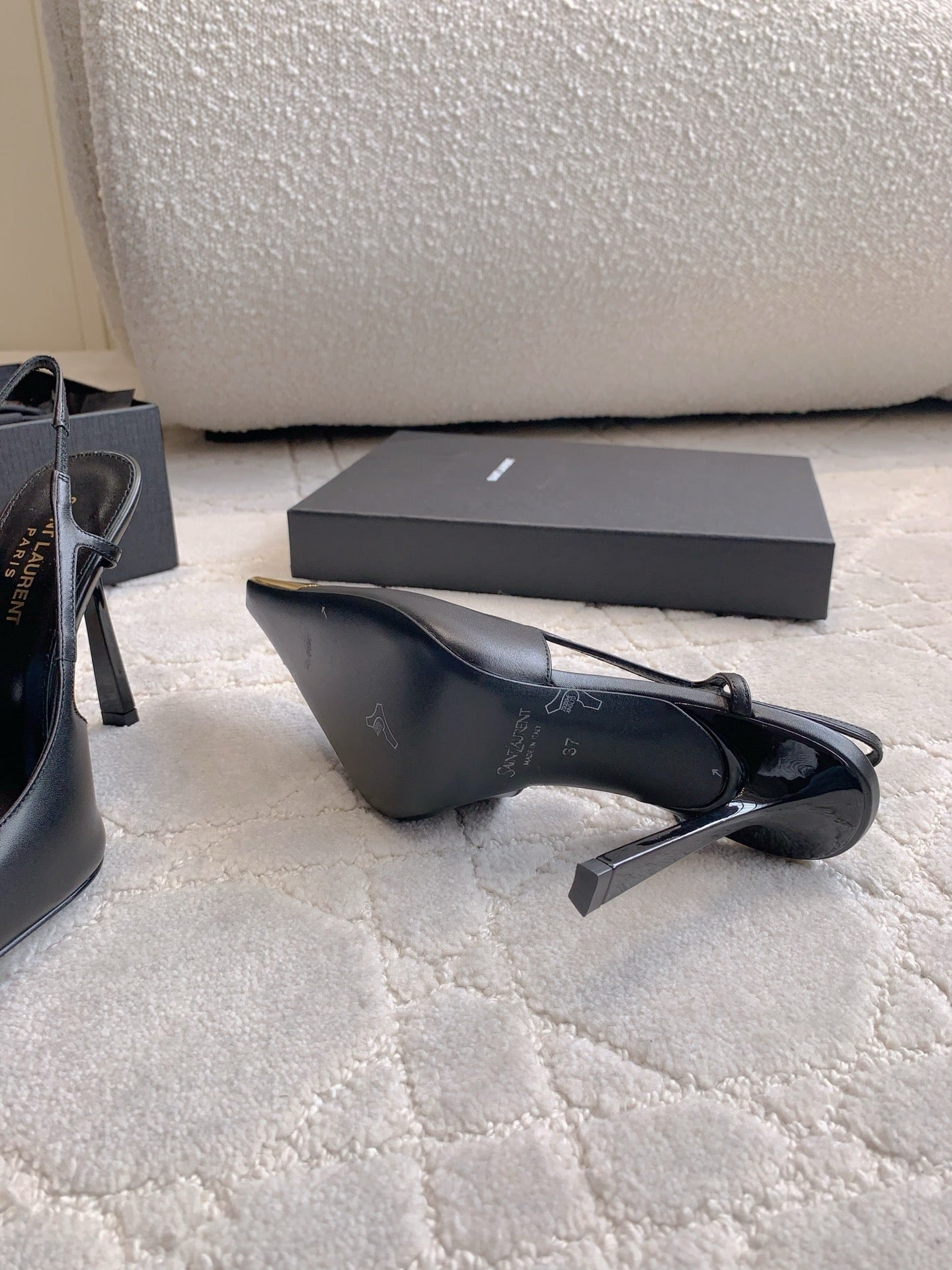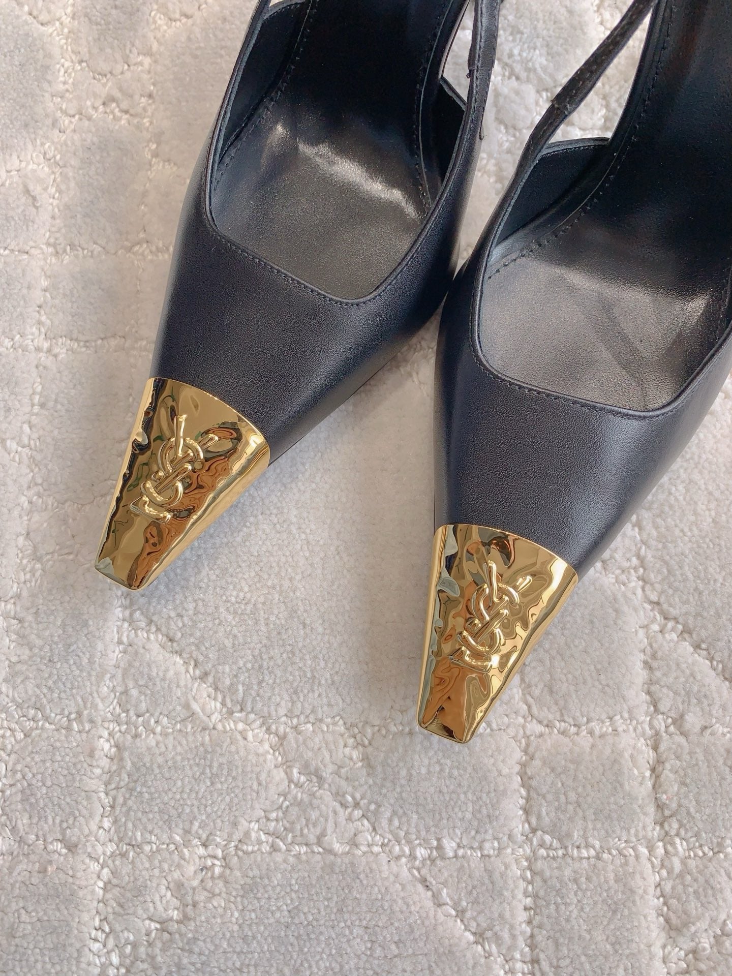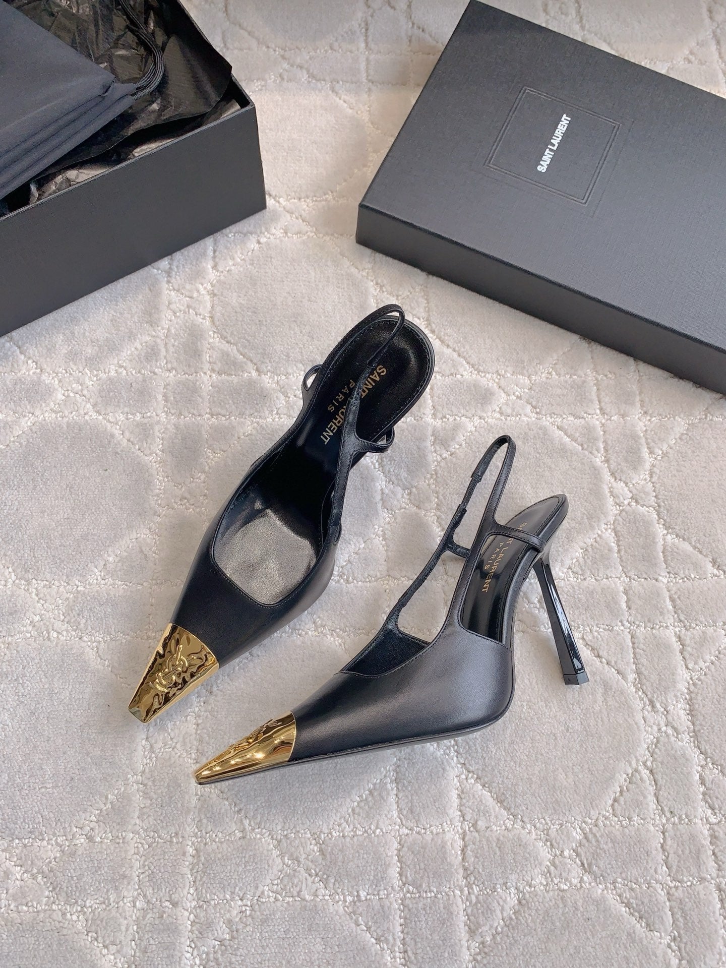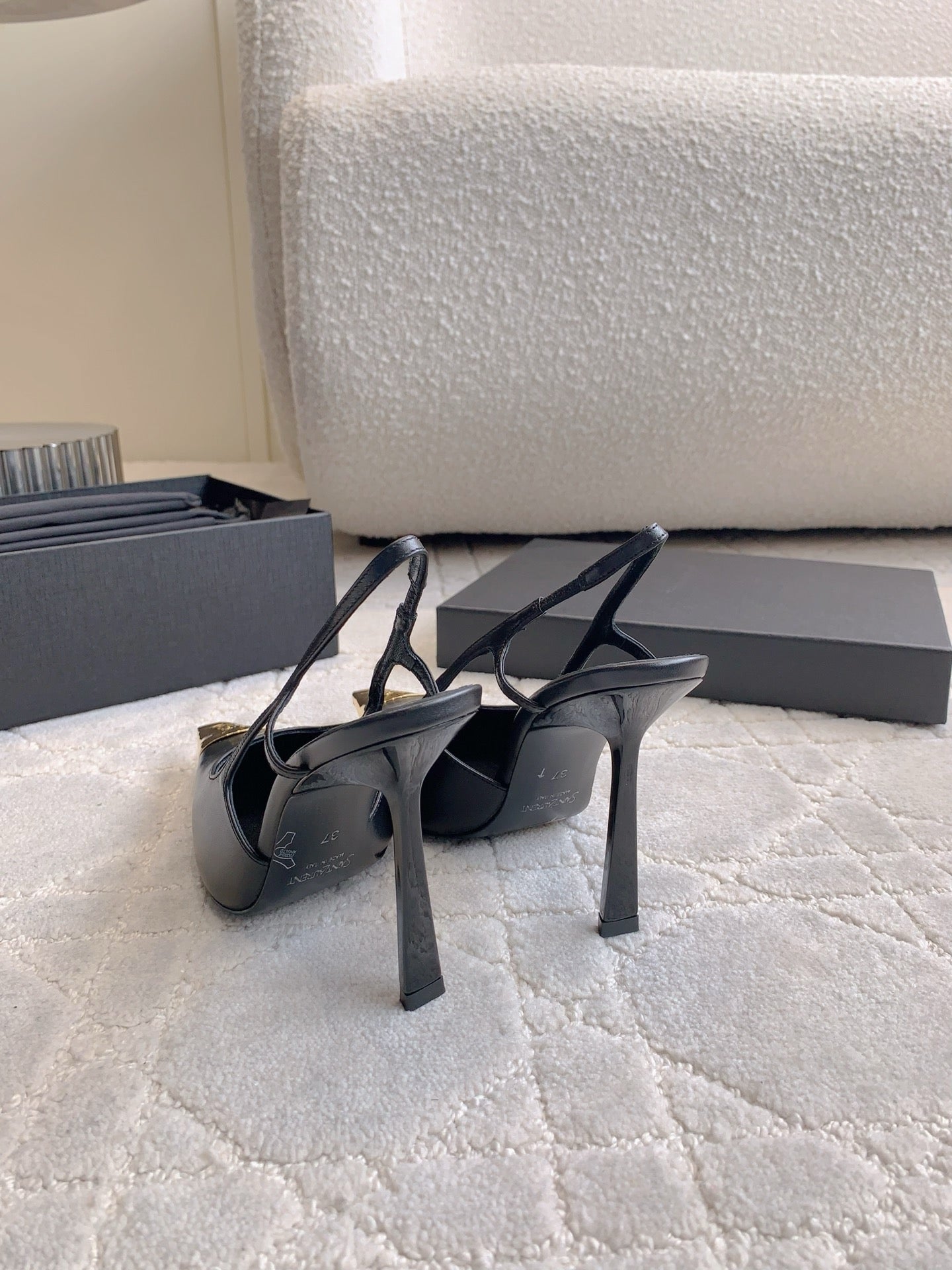 HIGH HEEL 10 CM SLINGBACK IN BLACK CALFSKIN WITH GOLD HARDWARE