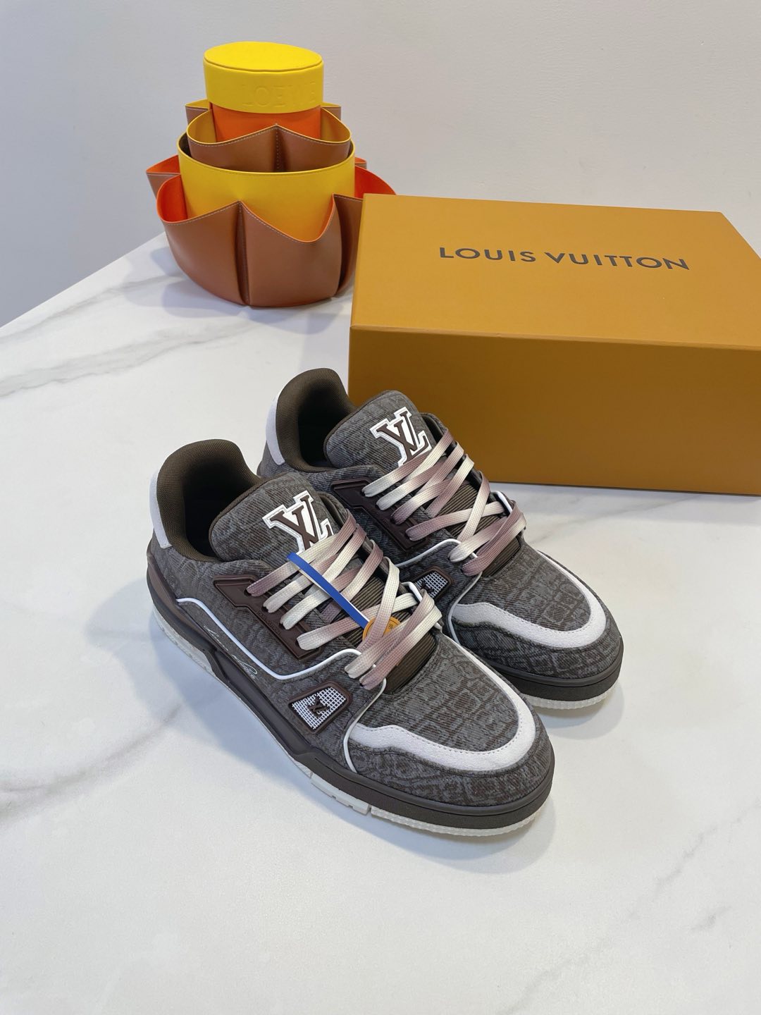 TRAINER SNEAKER IN WOOD BROWN MONOGRAM DENIM FABRIC