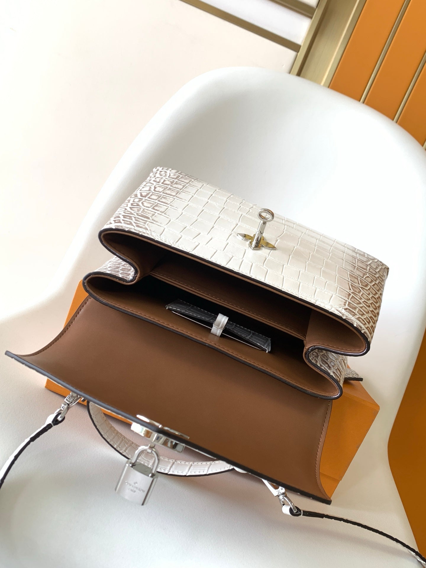 LV 25s Rose Des Vents Handbag 27cm White Crocodile Himalaya Metal HW